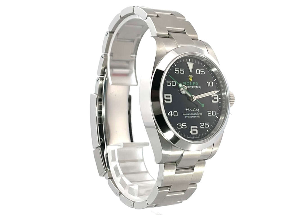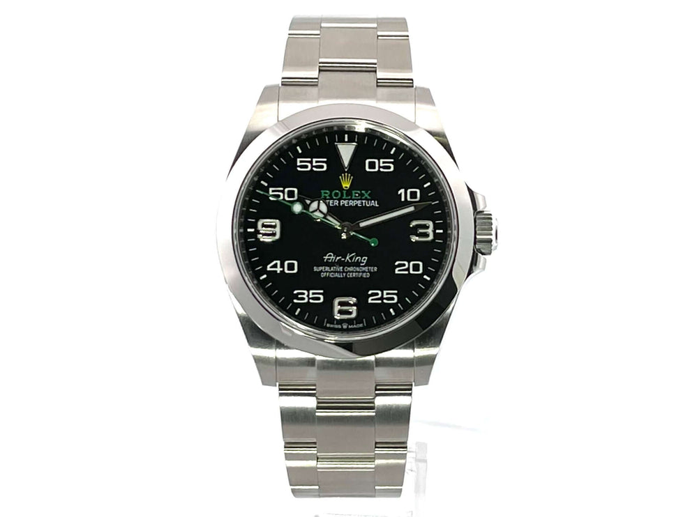Mit der Rolex Oyster Perpetual Air-King 116900 ehrt die Schweizer Traditionsmarke Rolex alle Flugpioniere. Mit Stolz verweist das Unternehmen auf seine besonders engen Beziehungen zur Welt der Luftfahrt. Uhren von Rolex haben die goldenen Dreißigerjahre der Luftfahrt begleitet. Daran erinnert das Schweizer Uhrenunternehmen noch heute. Viele Elemente aus der Zeit der Flugpioniere finden sich in den modernen Fliegeruhren wieder. Die Rolex Air King, die sich mit ihrem Design an den Fliegeruhren der Fünfzigerjahre orientiert, ist ein Beweis dafür. Liebhaber von luxuriösen Uhren kaufen mit dem bemerkenswerten Zeitmesser eine Uhr, die fest mit Traditionen verbunden ist.