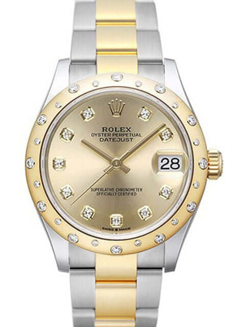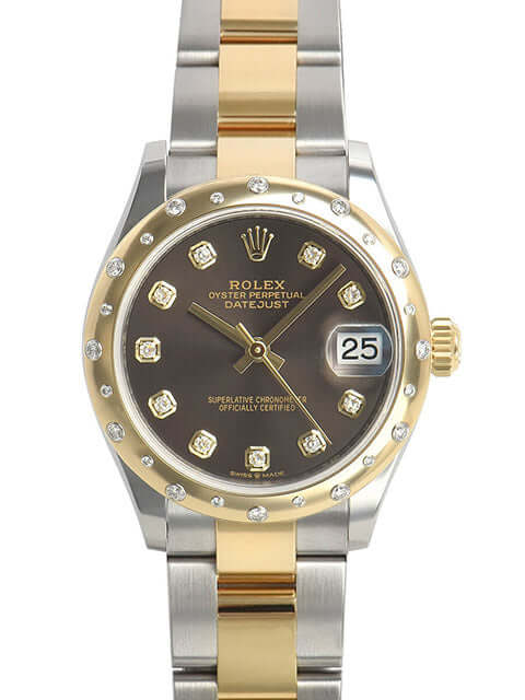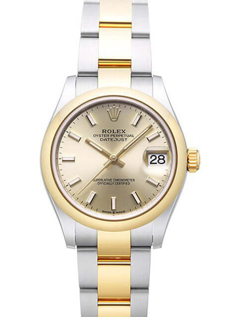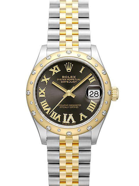 Eine Rolex Datejust 31 Oystersteel / Gelbgold überzeugt mit charakteristischen Erkennungszeichen