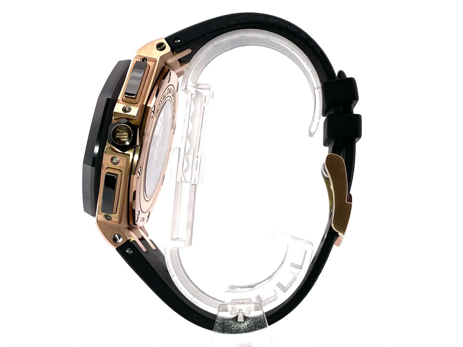 Case made of 18 kt rose gold polished and satin-finished, case diameter 44 mm, case height 14.4 mm, screwed ceramic bezel, black rubber strap with pin buckle made of 18 kt rose gold, black dial with luminous indices, automatic movement, manufacture caliber 3126 / 3840 with 59 jewels, vibration 21,600 A /h, power reserve for approx. 50 hours, date display, anti-reflective sapphire crystal, 18 kt rose gold screwed and engraved display back, water resistant up to 10 bar.