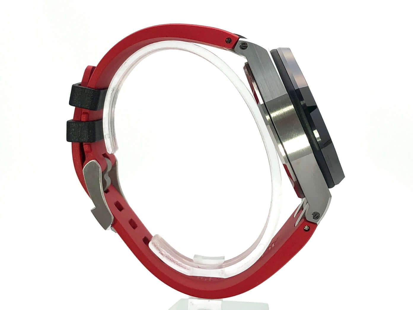 Case made of polished and satin-finished stainless steel, case diameter 42 mm, case height 14.5 mm, black ceramic bezel, black / red rubber strap with stainless steel pin buckle, black dial with white Arabic numerals with luminous material, tachymeter scale, automatic movement, manufacture caliber 3126 / 3840 with 59 jewels , oscillation 21,600 A/h, power reserve for approx. 50 hours, date display, anti-reflective sapphire crystal, screwed display back, water resistant up to 10 bar.