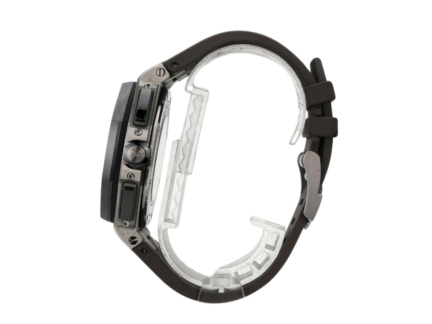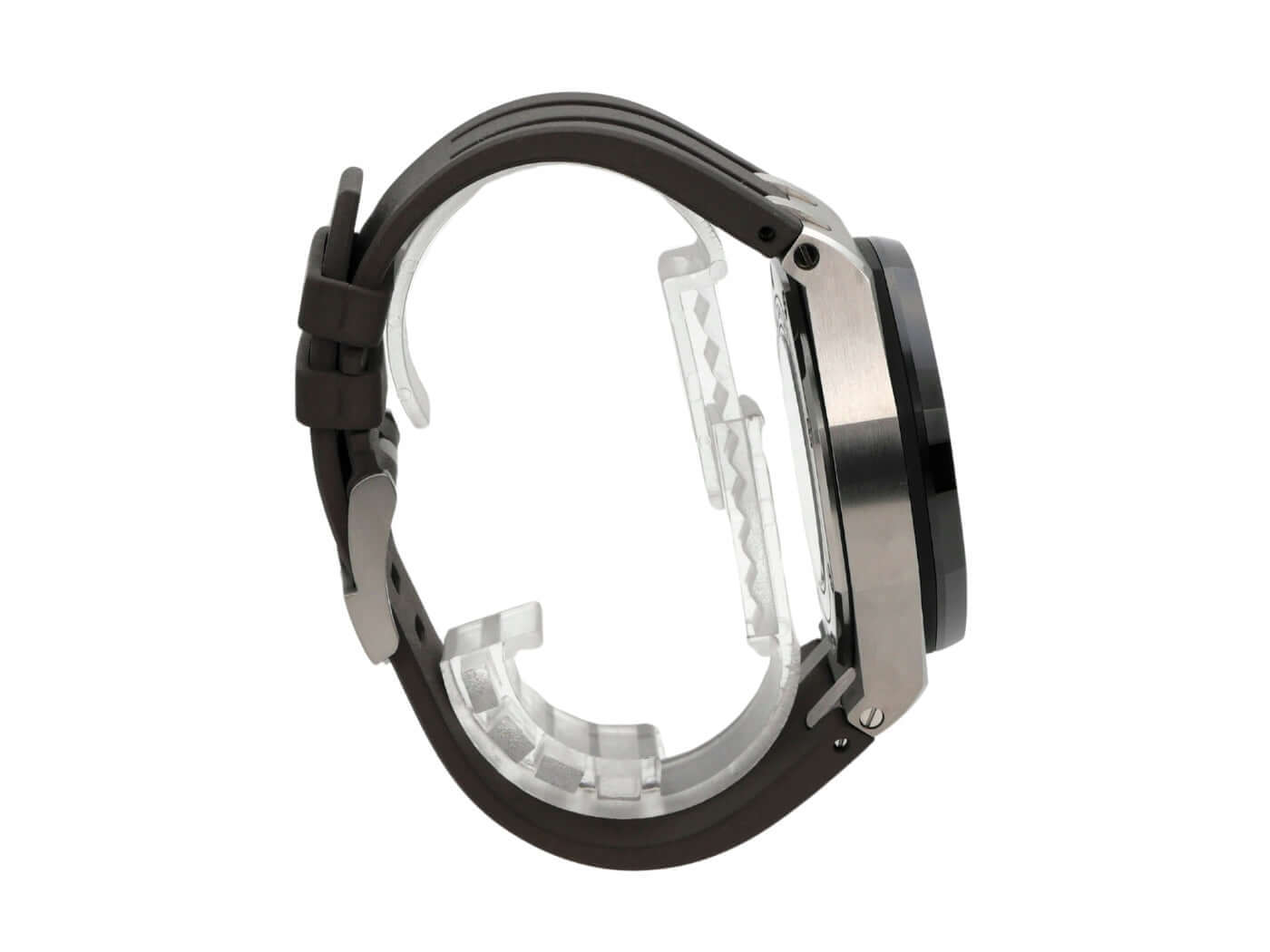 Case made of polished and satin-finished titanium, case diameter 44 mm, case height 14.4 mm, screwed ceramic bezel, gray rubber strap with titanium pin buckle, gray dial with luminous indices and markers, automatic movement, manufacture caliber 3126 / 3840 with 59 jewels, frequency 21,600 A/h, power reserve approx. 50 hours, date display, anti-reflective sapphire crystal, screwed and engraved display back, water-resistant up to 10 bar.