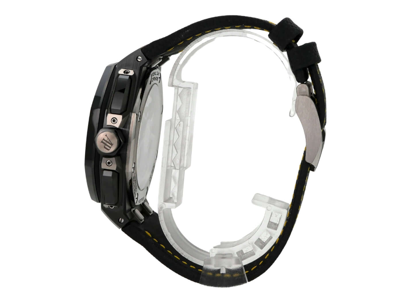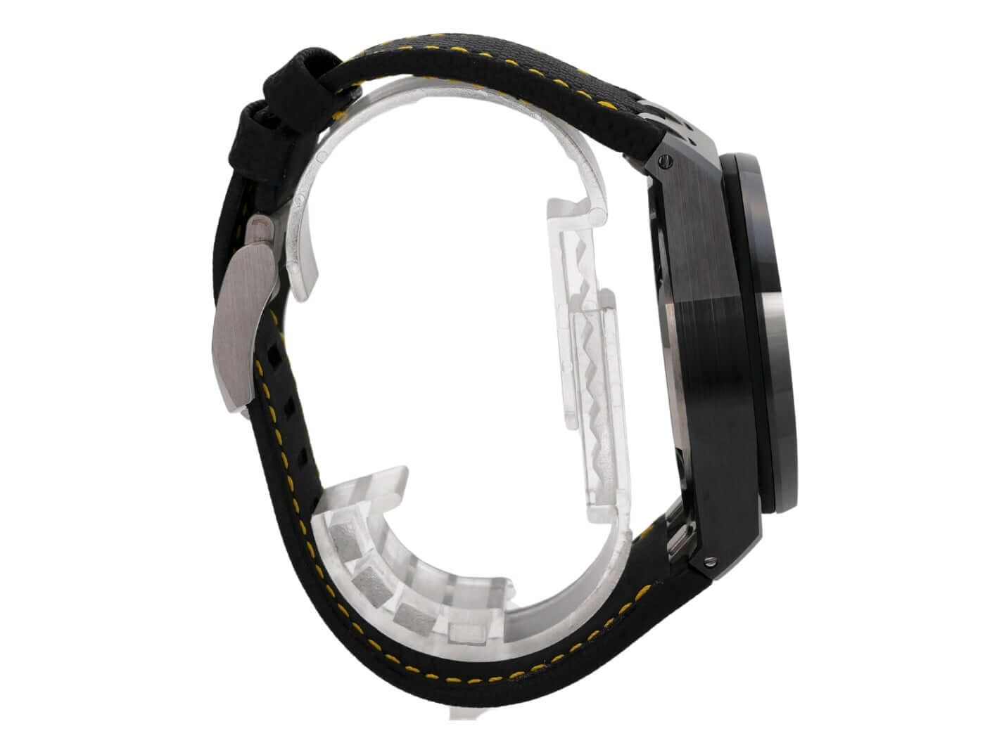Housing made of Polished and satin-finished ceramic, case diameter 43 mm, case height 14.4 mm, black ceramic bezel, black rubber strap with titanium pin buckle, additional yellow leather strap, black dial with luminous indices, black subdials, tachymeter scale, automatic movement, manufacture caliber 4401 with 40 jewels, frequency 28,800 A/h, power reserve approx. 70 hours, chronograph, date display, flyback function, anti-reflective sapphire crystal, screwed display back, water-resistant up to 10 bar, limited to 500 pieces.