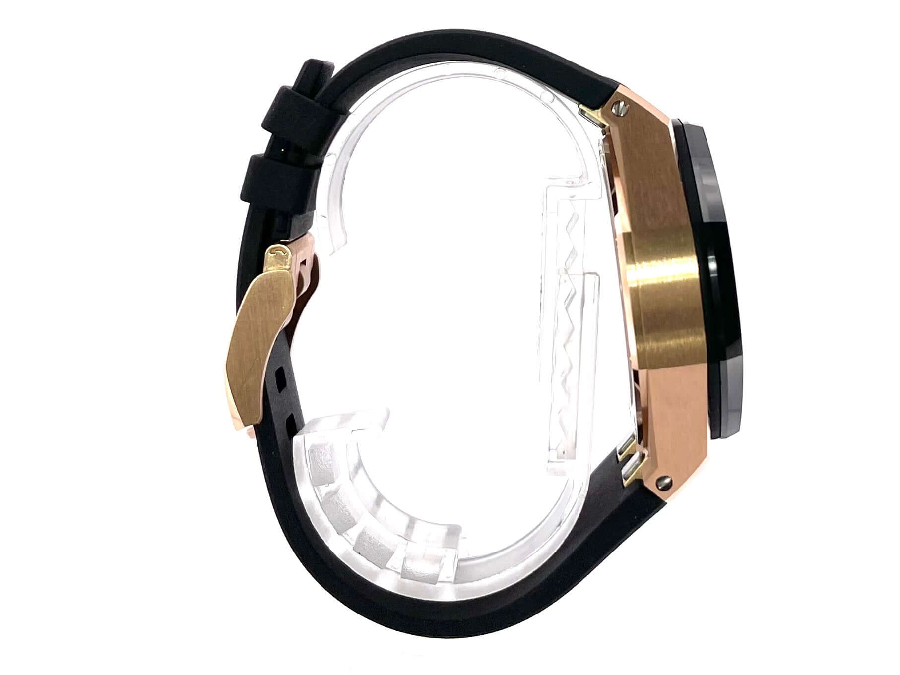 Case made of 18 kt rose gold polished and satin-finished, case diameter 43 mm, case height 14.4 mm, black ceramic bezel, black rubber strap with 18 kt rose gold pin buckle, additional black leather strap, black dial with luminous indices, silver-colored totalizers, tachymeter scale, automatic movement, manufacture caliber 4401 with 40 jewels, oscillation 28,800 A/h, power reserve for approx. 70 hours, chronograph, date display, flyback function, anti-reflective sapphire crystal, screwed display back, water resistant up to 10 bar.