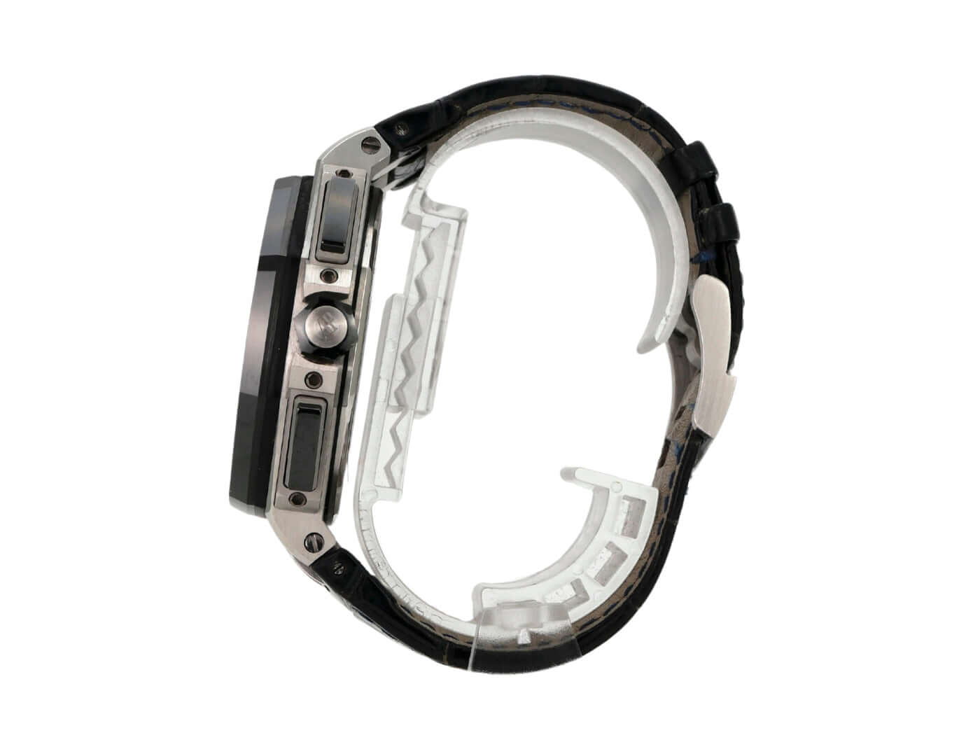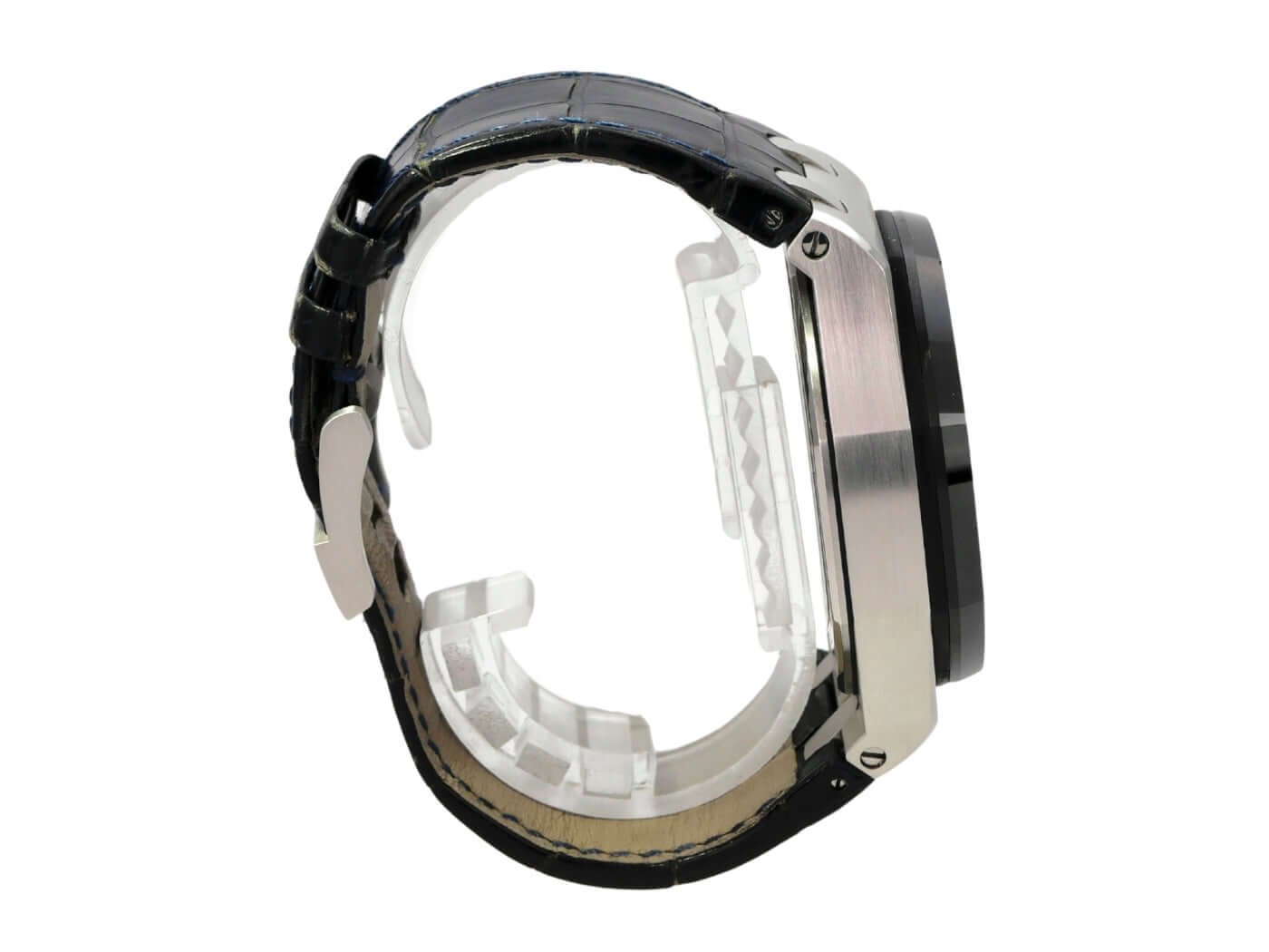 Case made of polished and satin-finished platinum, case diameter 44 mm, case height 14.1 mm, screwed ceramic bezel, blue leather strap with platinum pin buckle, Additional rubber strap included, blue dial with luminous indexes and luminous markers, automatic movement, manufacture caliber 3126 / 3840 with 59 jewels, frequency 21,600 A/h, power reserve approx. 50 hours, date display, anti-reflective sapphire crystal, screwed and engraved platinum display back, water-resistant up to 10 bar.