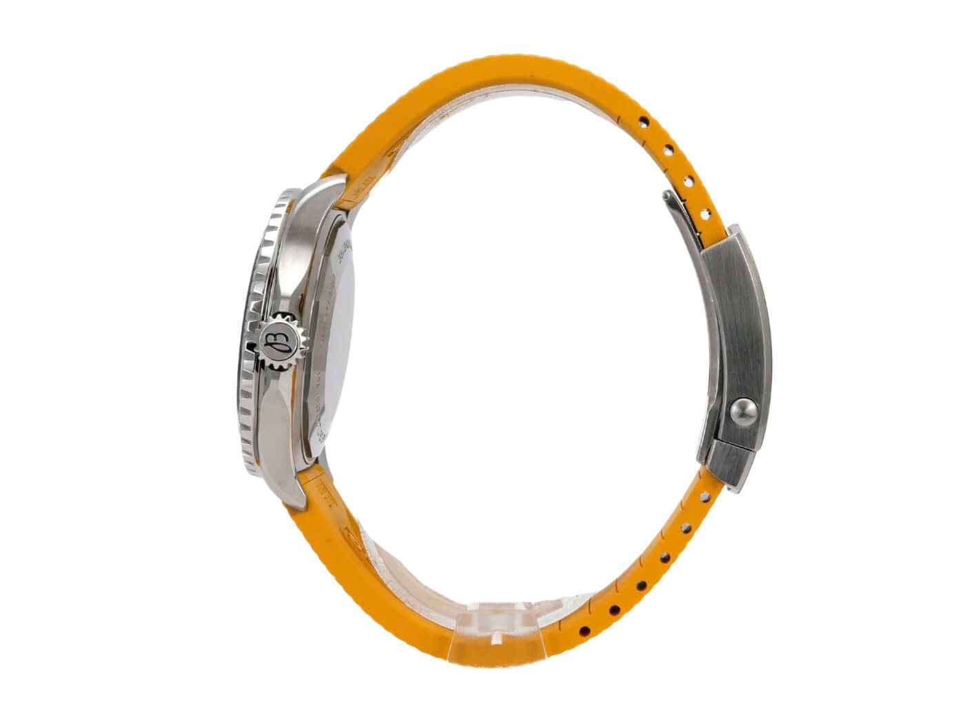 Case made of polished and satin-finished stainless steel, case diameter 42 mm, case height 12.5 mm, stainless steel bezel with black ceramic insert, unidirectional rotating with lock, yellow rubber strap with folding clasp, black dial with applied luminous indices, luminous hands, automatic, caliber Breitling 17, 25 jewels, 28,800 A/h, power reserve approx. 38 hours, chronometer, stop seconds for precise time setting, sapphire crystal double anti-reflective and domed, screw-down crown with flank protection, screwed stainless steel back, water-resistant up to 30 bar.