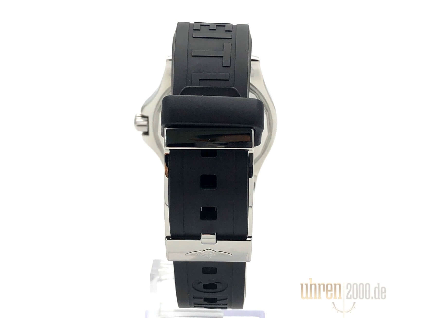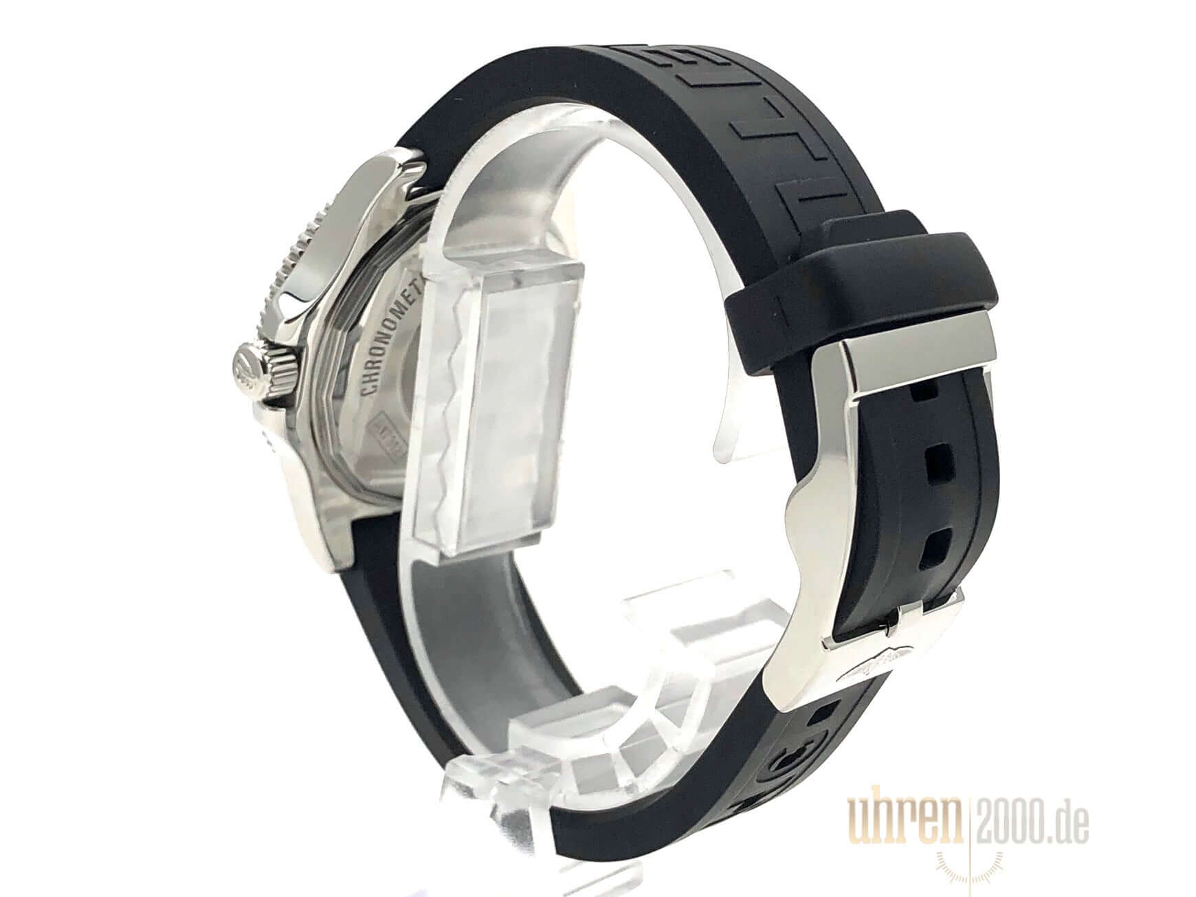Case made of polished and satin-finished stainless steel, case diameter 36 mm, case height 11.5 mm, stainless steel bezel with black inlay, 60 minute scale, unidirectional rotating with lock, black Diver Pro III rubber strap with pin buckle, additional stainless steel strap with folding clasp, Volcano black dial with applied luminous Arabic numerals, luminous hands, second hand with luminous tip, automatic, Breitling 17 caliber, 25 jewels, 28,800 A/h, power reserve approx. 40 hours, date, chronometer with certificate, stop-seconds for setting the time to the second, sapphire crystal with anti-reflective coating on both sides and cambered, screwed Crown with side protection, screwed stainless steel base, waterproof up to 20 bar.