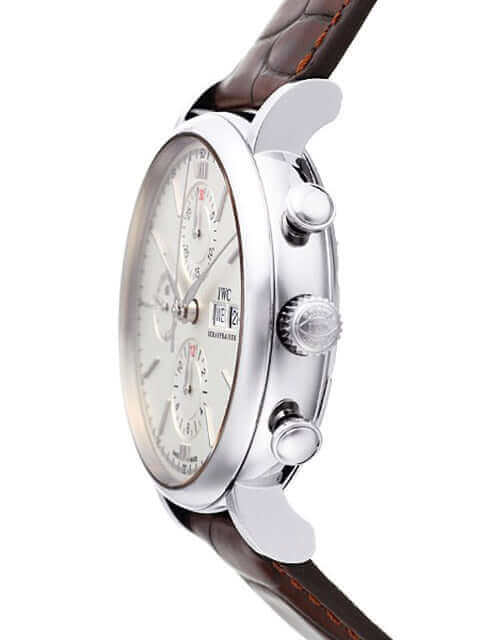 Case made of polished stainless steel, case diameter 42 mm, case height 13.6 mm, brown leather strap with decorative stitching and pin buckle, silver-colored dial with applied indices, automatic, caliber 75320 with 25 jewels, date display and day of the week display (English), chronograph, sapphire crystal, screwed stainless steel back , Waterproof up to 3 bar.