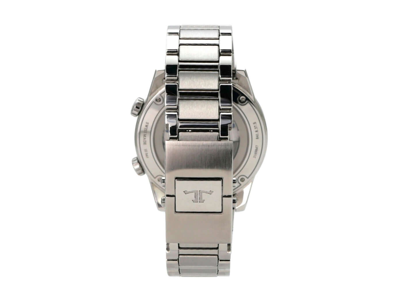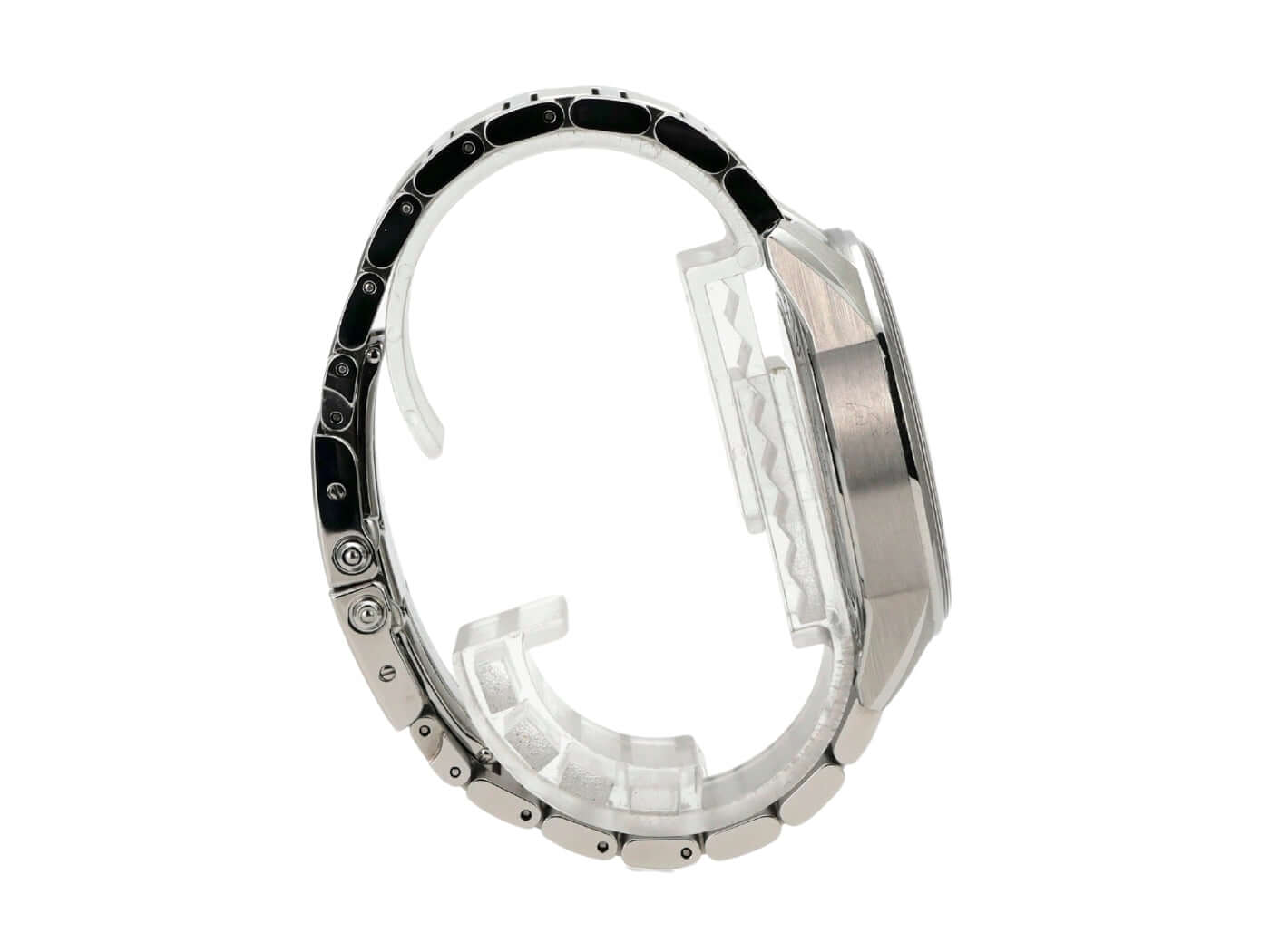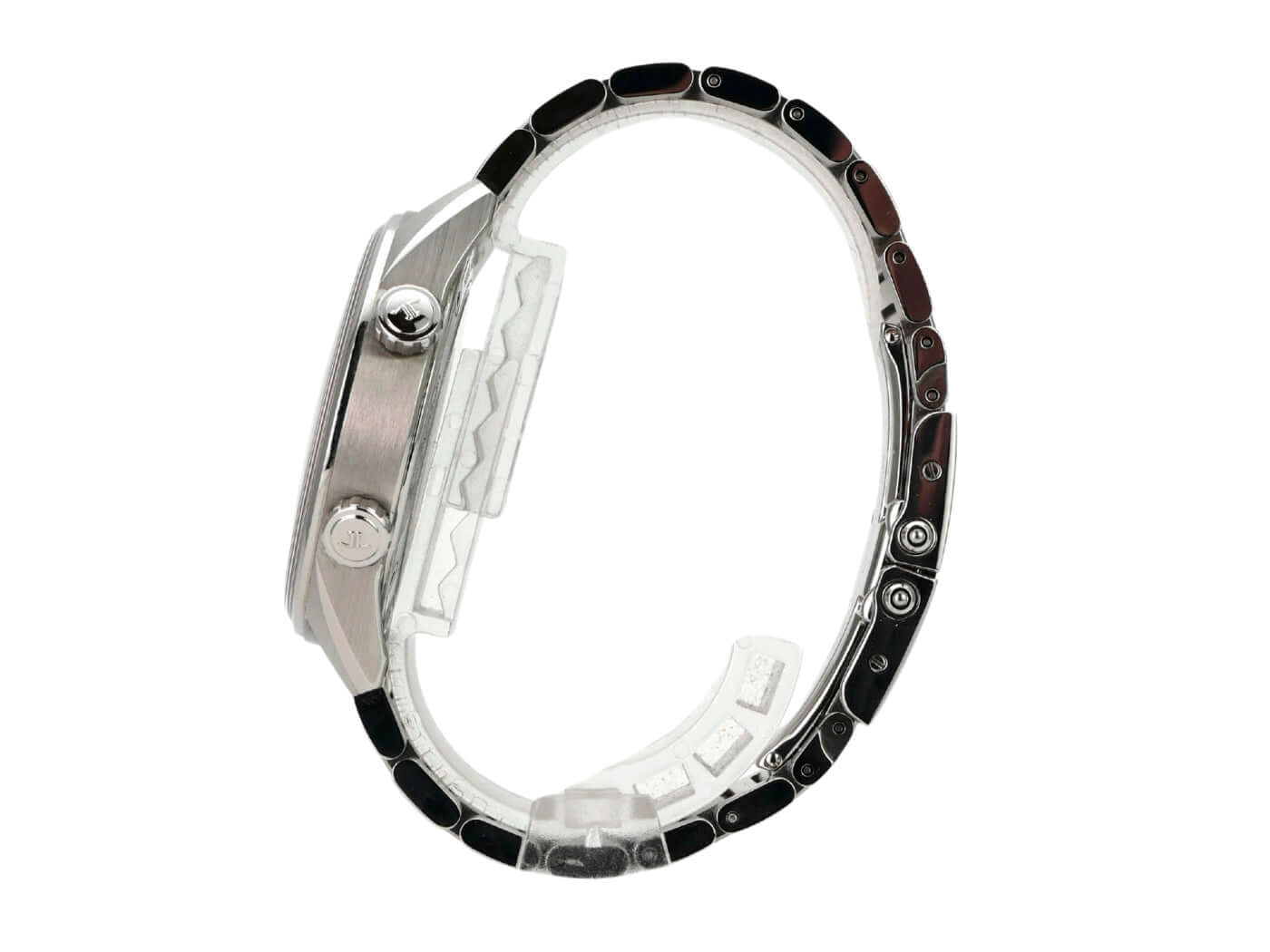 Polished stainless steel case, case diameter 41 mm, case height 11.2 mm, polished stainless steel bezel, stainless steel bracelet with double folding clasp, black dial, automatic movement, caliber Jaeger-LeCoultre 898E/1, 30 jewels, 28,800 vibrations per hour, approximately 40 hours power reserve, central seconds, sapphire crystal, stainless steel case back with display window, water-resistant up to 10 bar.