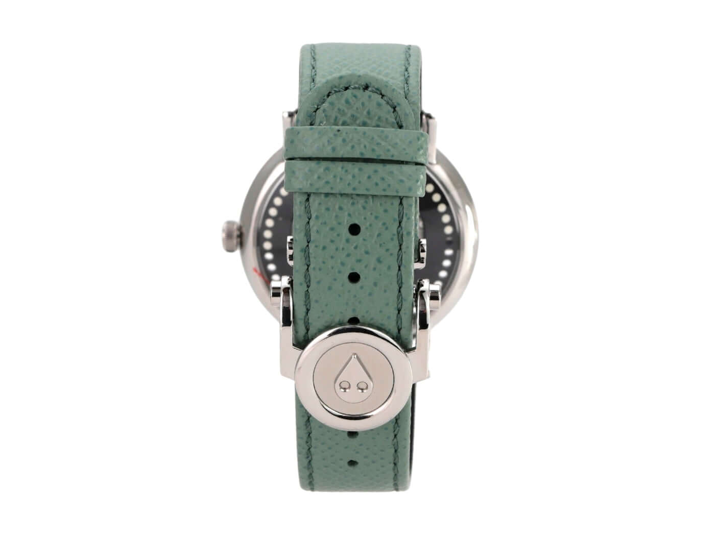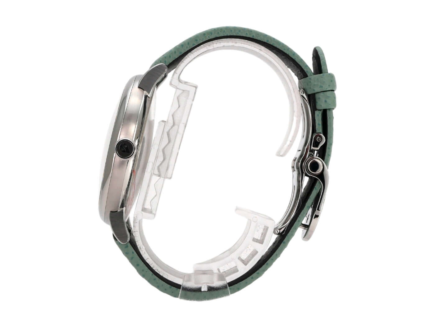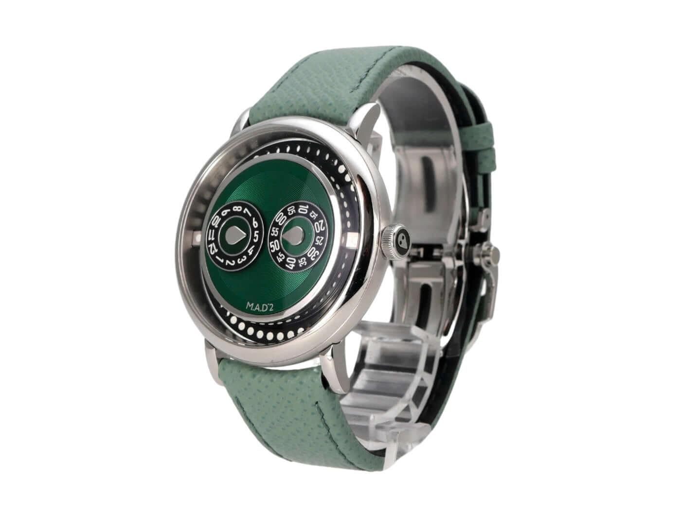 Case made of polished stainless steel, case diameter 42 mm, case height 12.3 mm, polished stainless steel bezel, green leather strap with stainless steel folding clasp, green dial with Arabic numerals, automatic winding, La Joux-Perret caliber G101, 24 jewels, frequency 28,800 A/h, power reserve of approx. 64 hours, case back with sapphire glass window, water resistant up to 3 bar.