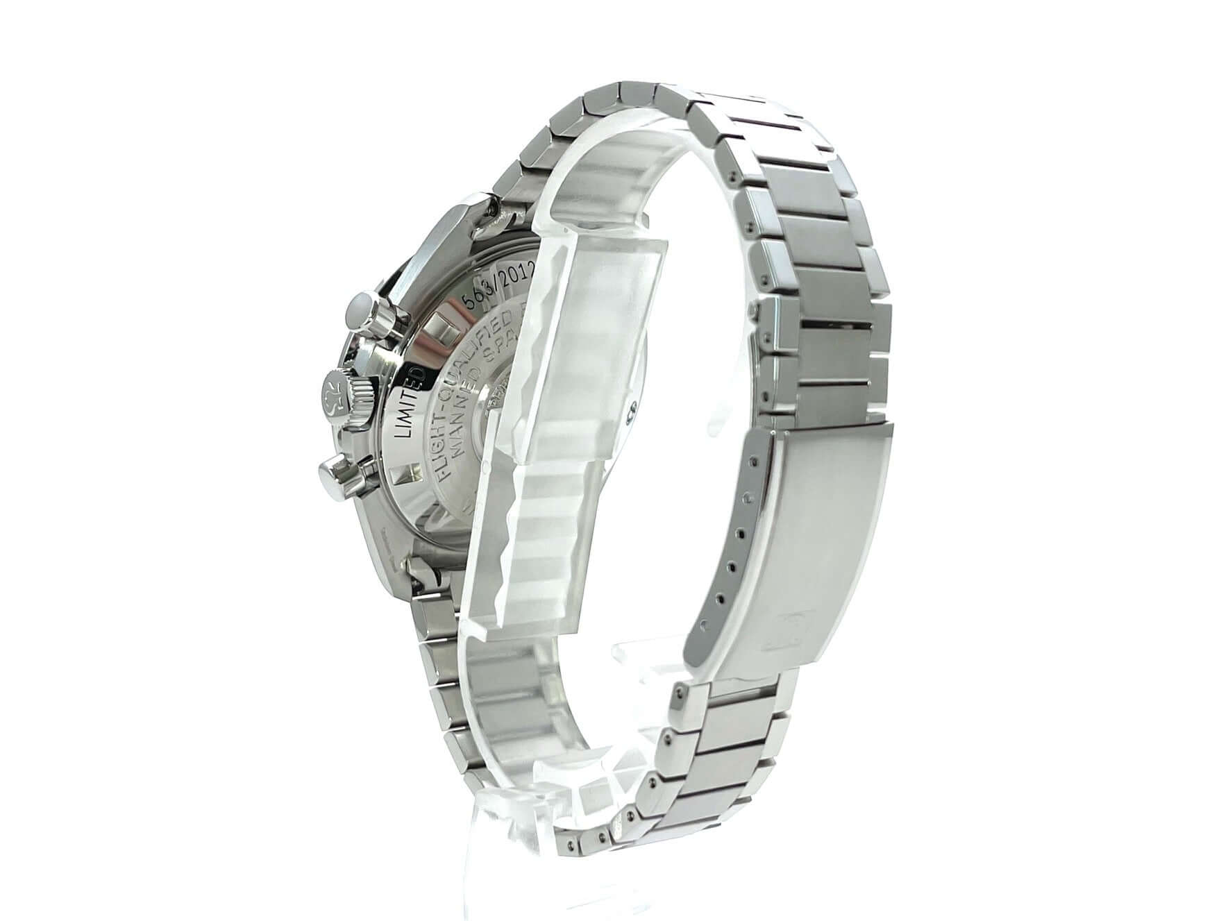 Case made of polished and satined stainless steel, diameter 42 mm, stainless steel bezel, tachymeter bezel in black, black leather strap with pin buckle, as well as Nato strap with pin buckle, extra stainless steel strap with folding clasp, black dial with line indices, hand-wound movement, Omega caliber 1861, 48 hour power reserve, Hesalite glass, limited to 2012 pieces, waterproof up to 5 bar.