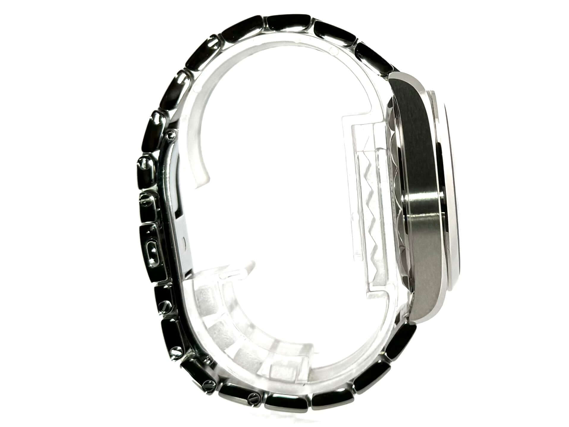 Case polished and satined stainless steel, case diameter 38.5 mm, smooth and polished stainless steel bezel, polished and satined stainless steel bracelet with double folding clasp, additional rubber strap with pin buckle, black dial with applied luminous indices, hands with luminous tip, automatic, anti-magnetic movement that can withstand a load of over Withstands 15,000 Gauss, caliber Omega 8800, Co-Axial escapement, power reserve approx. 55 hours, date display, sapphire crystal, screwed crown, screwed stainless steel back, engraved with sapphire glass back, water resistant up to 15 bar.