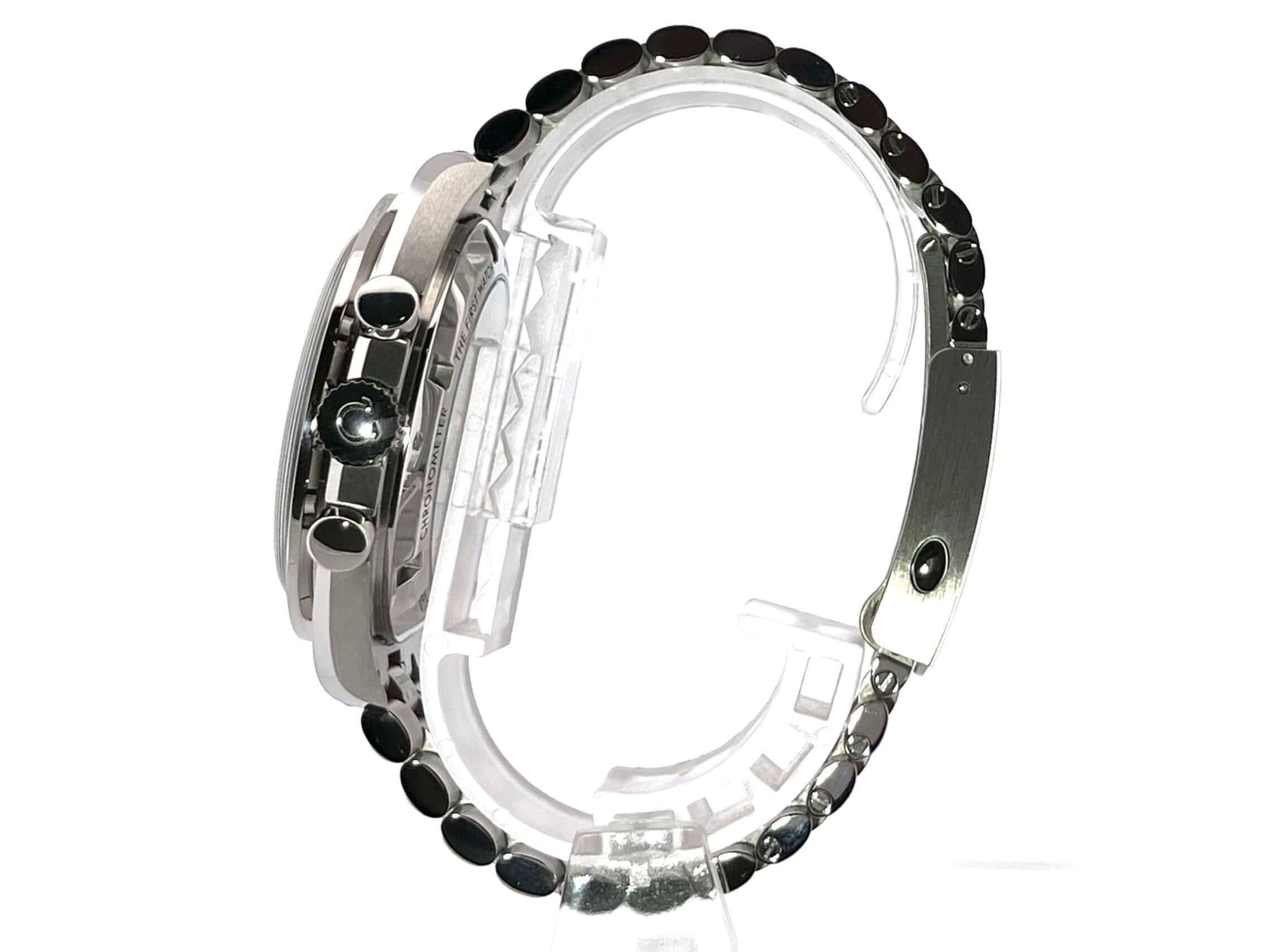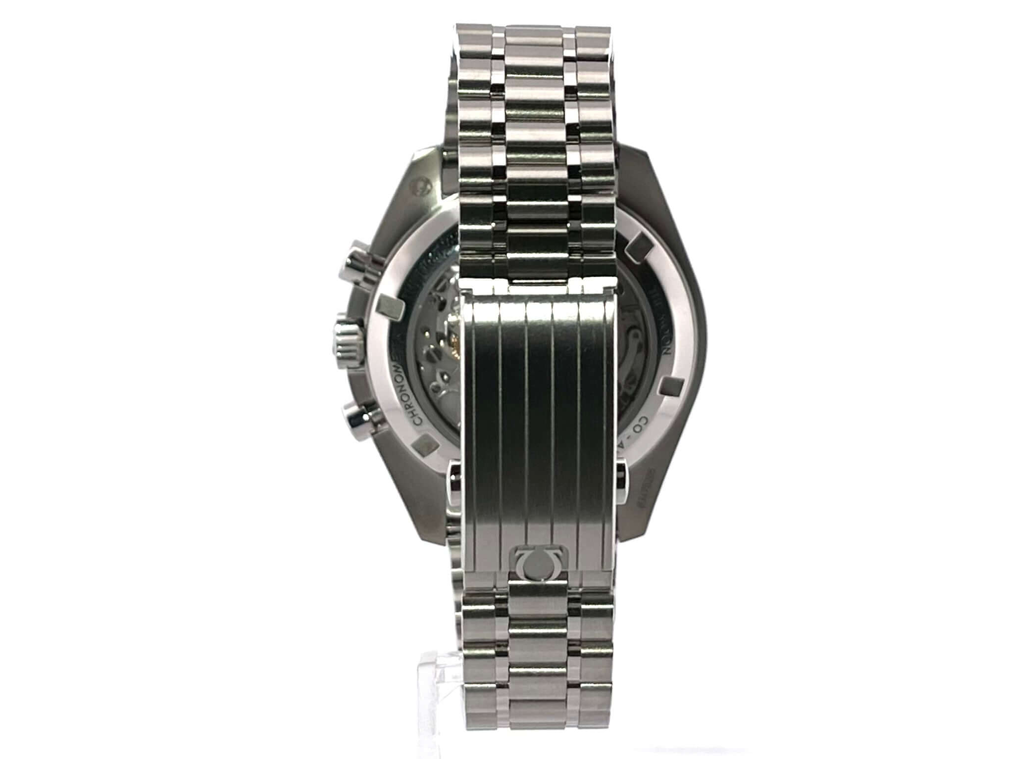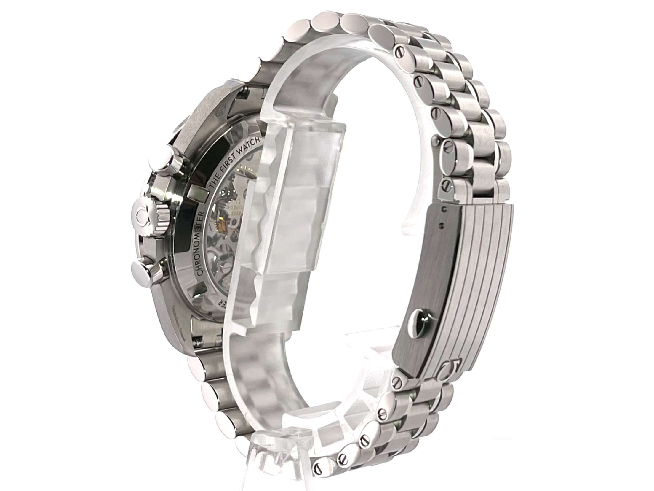 Case made of polished and satined stainless steel, case diameter 42 mm, case height 14.3 mm, stainless steel bezel with black inlay and tachymeter scale, polished and satined stainless steel bracelet with safety folding clasp, black dial with applied luminous indices, luminous hands, hand-wound movement, caliber Omega 3861 with 26 jewels , 21,600 A/h, power reserve approx. 50 hours, chronograph, master chronometer, sapphire crystal, anti-reflective coating on both sides, screwed stainless steel back, engraved with sapphire glass back, water resistant up to 5 bar.