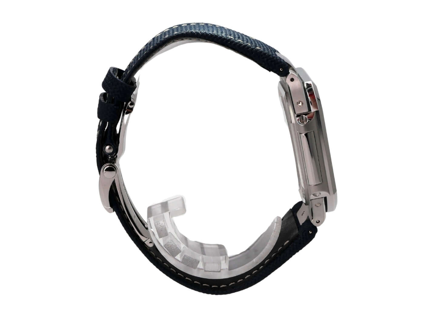 Case made of polished platinum, case diameter 45 mm, polished platinum bezel, blue textile strap with folding clasp, blue dial with sunburst finish, automatic winding, manufacture caliber 240 PS CI J LU with 52 jewels, frequency 21,600 A/h, power reserve up to 48 hours, date, day, moon phase, platinum case back with sapphire crystal window, water-resistant up to 3 bar.