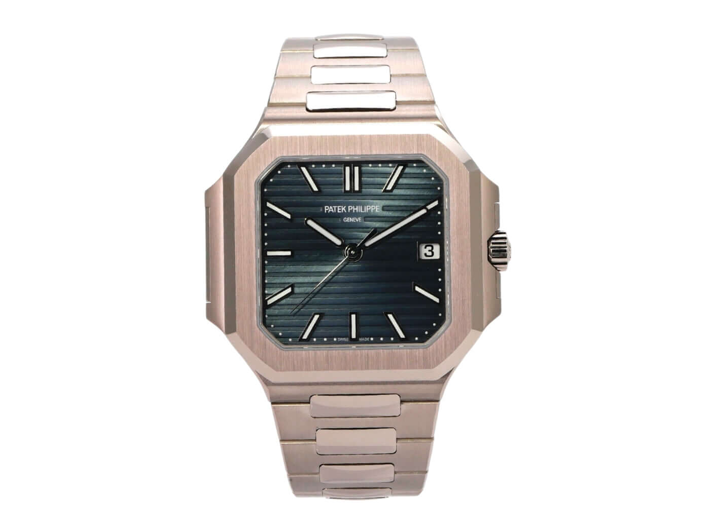 Case made of 18 kt white gold, polished and satin-finished, case diameter 40 mm, case height 8.5 mm, 18 kt white gold bezel polished and satin-finished, 18 kt white gold band with folding clasp, blue dial with applied luminous markers, self-winding, Patek Philippe manufacture caliber 26-330 S C with 30 jewels, frequency 28,800 vibrations per hour, power reserve up to 45 hours, date, central seconds, case back made of 18 kt white gold with sapphire crystal window, water-resistant up to 3 bar.