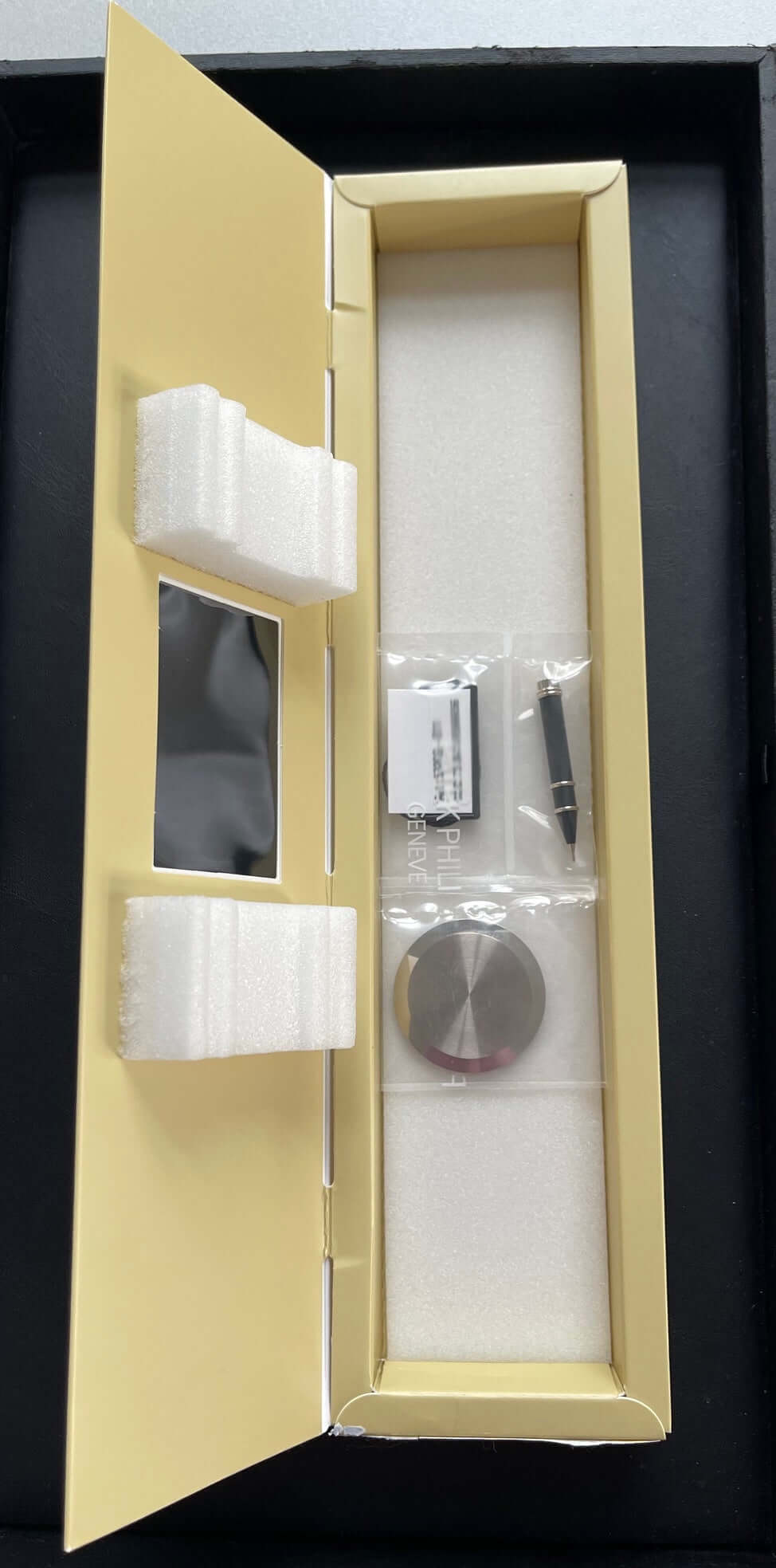 Watch with box and papers, international warranty card, and manufacturer's packaging