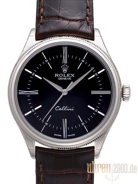 Rolex Cellini Time Ref. 50509 black dial with brown crocodile leather strap