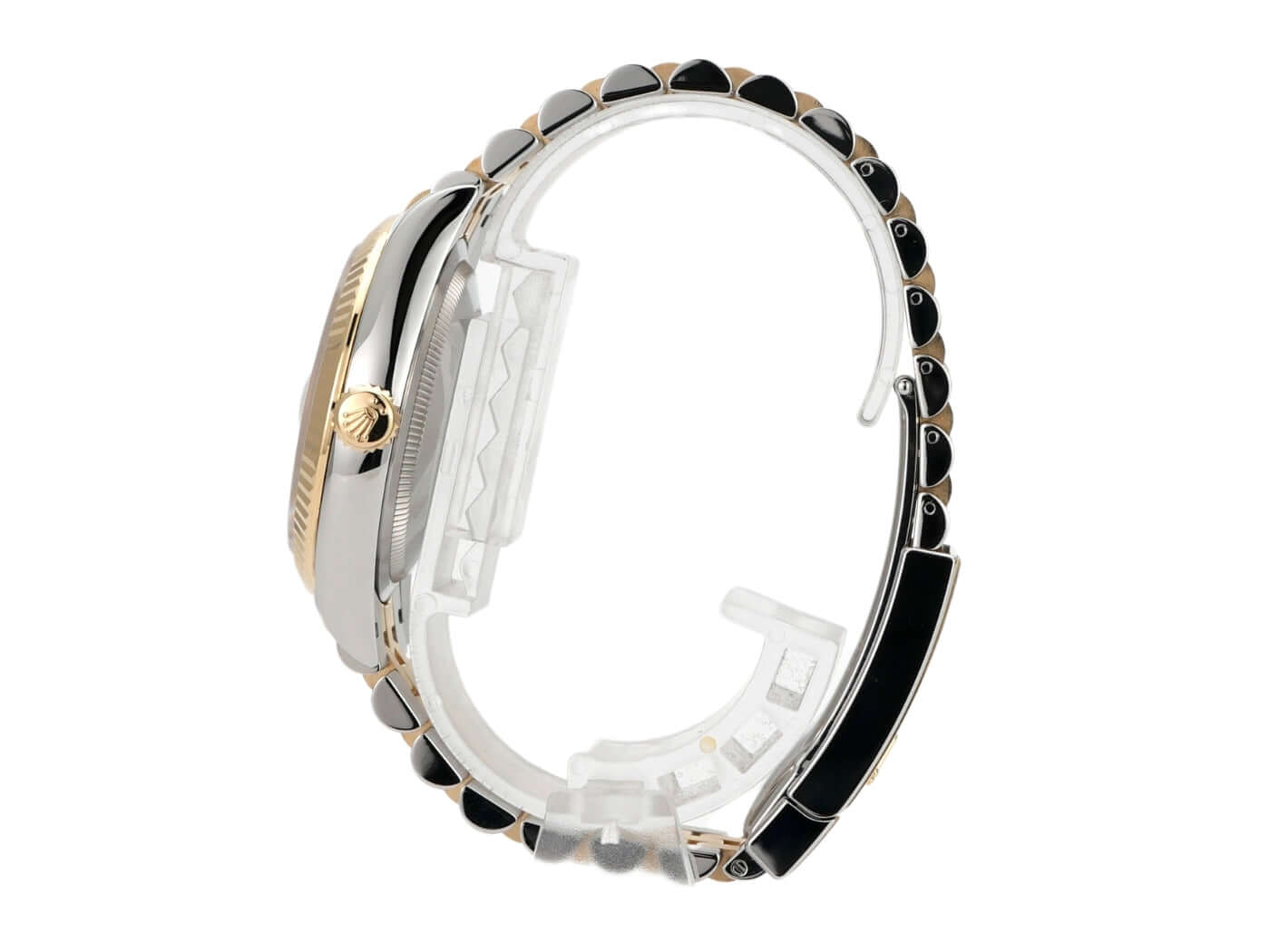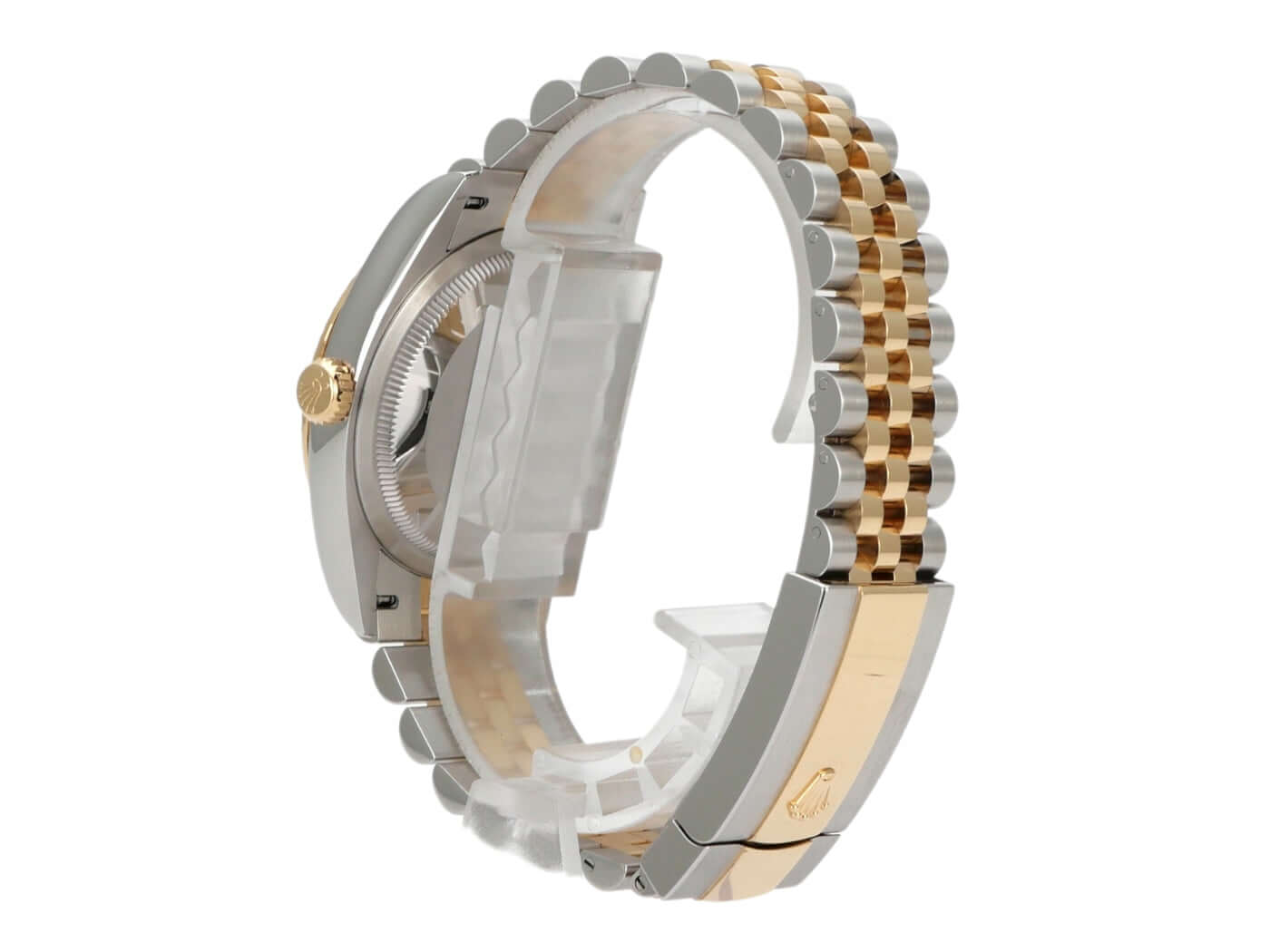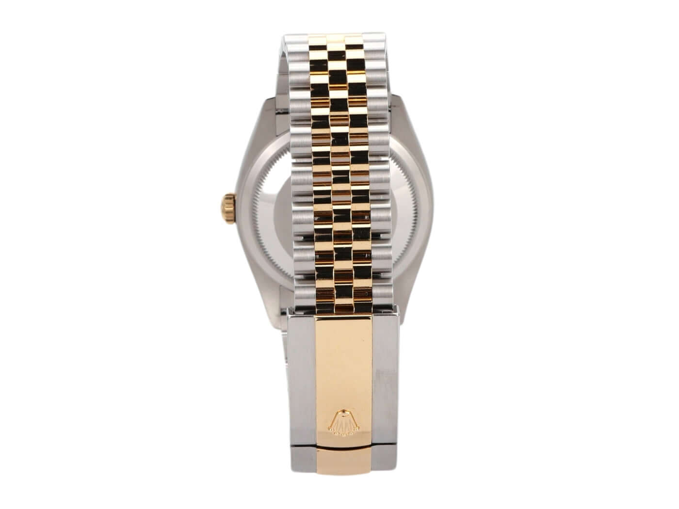 Stainless steel / polished and satin-finished yellow gold case, 36 mm case diameter, fluted 18 kt yellow gold bezel, Jubilee bracelet in stainless steel / 18 kt yellow gold polished and satin-finished with folding clasp, silver-colored dial with diamonds at Roman VI and IX, yellow gold hands, automatic movement, Rolex Manufacture Caliber 3235 with 31 jewels, 28,800 A/h, 70-hour power reserve, date display, chronometer, scratch-resistant sapphire crystal, screw-down 18 kt yellow gold crown, screw-down stainless steel case back, water-resistant up to 10 bar.