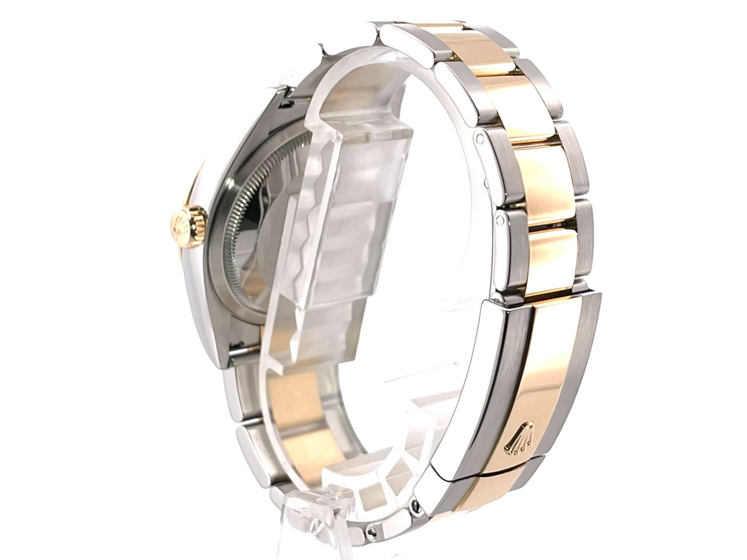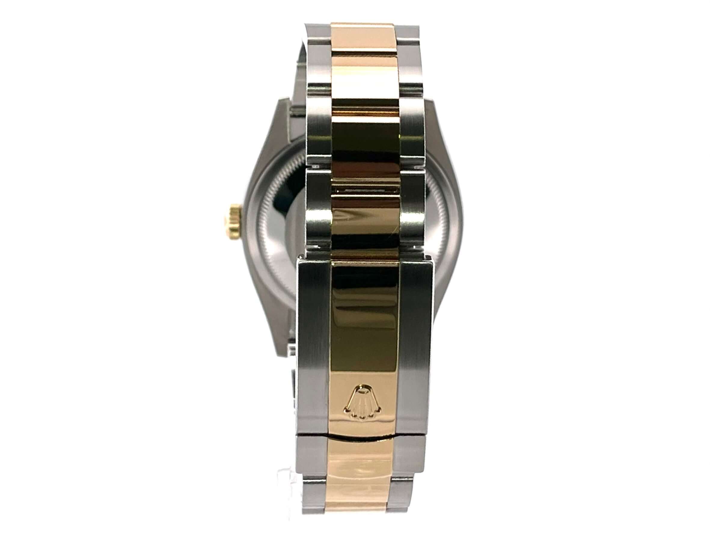 Case made of stainless steel / yellow gold polished and satin-finished, case diameter 36 mm, fluted 18 kt yellow gold bezel, Oyster bracelet made of stainless steel / 18 kt yellow gold polished and satin-finished with folding clasp, white dial with applied gold Roman numerals, gold hands, automatic movement, Rolex manufacture caliber 3235 with 31 jewels, 28,800 A/h, 70 hour power reserve, date display, chronometer, scratch-resistant sapphire crystal, screw-down 18 kt yellow gold crown, screw-down stainless steel back, water resistant up to 10 bar.