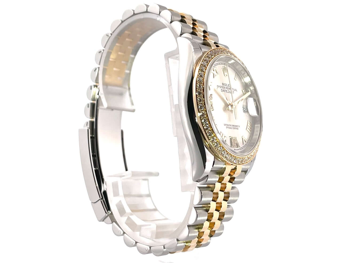 Rolex Datejust 36 Stainless Steel Oystersteel/Yellow Gold Diamond Bezel Ref. 126283RBR Silver Roman Diamond Jubile Band