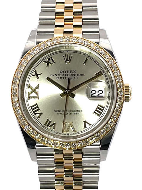 Rolex Datejust 36 126283RBR Diamond Bezel Jubile Band Silver Roman Diamond