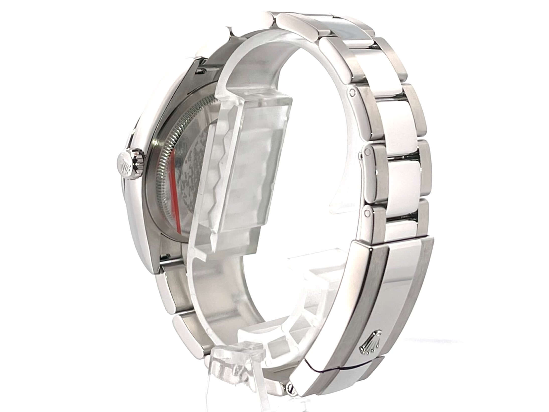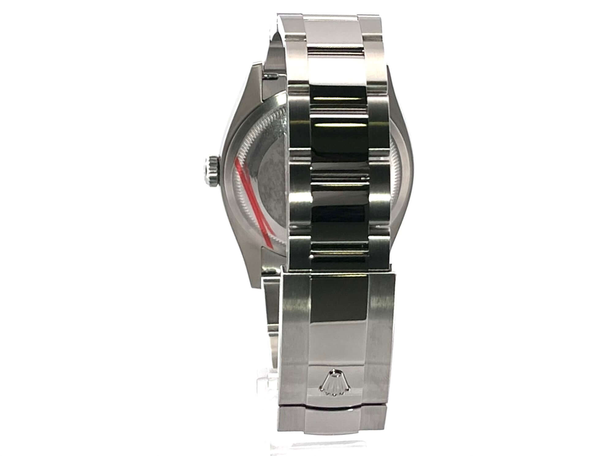 Case made of polished and satin-finished Oystersteel stainless steel, case diameter 36 mm, mint green dial with applied luminous indices, luminous hands, Oyster stainless steel bracelet with folding clasp, automatic, Rolex manufacture caliber 3235, 70 hours power reserve, date display, chronometer, sapphire crystal, screw-down crown, screwed stainless steel back, water-resistant up to 10 bar.