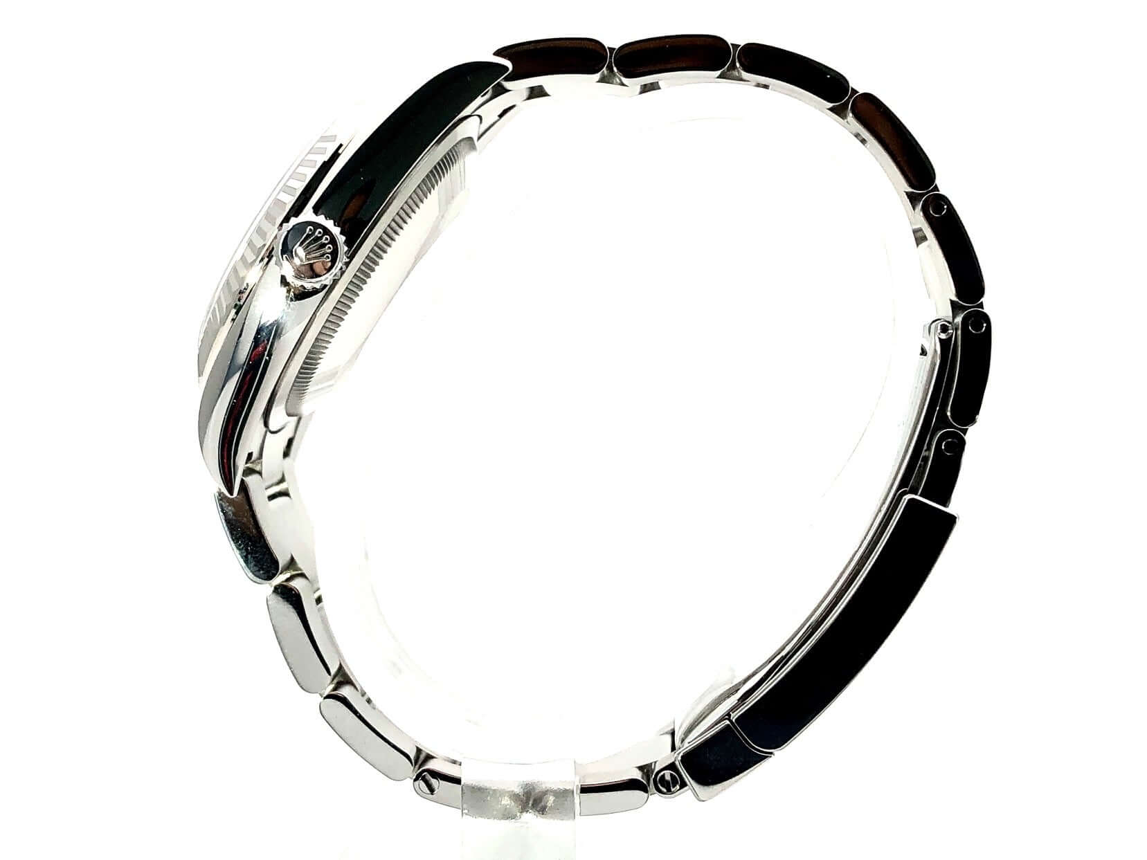 Case made of stainless steel Oystersteel polished and satined, case diameter 36 mm, bezel made of 18 kt white gold, blue Jubile dial with 10 applied diamonds, Oyster stainless steel bracelet with folding clasp, automatic, Rolex manufacture caliber 3235, 70 hour power reserve, date display, chronometer, sapphire crystal, screw-down crown, Screwed stainless steel base, waterproof up to 10 bar.
