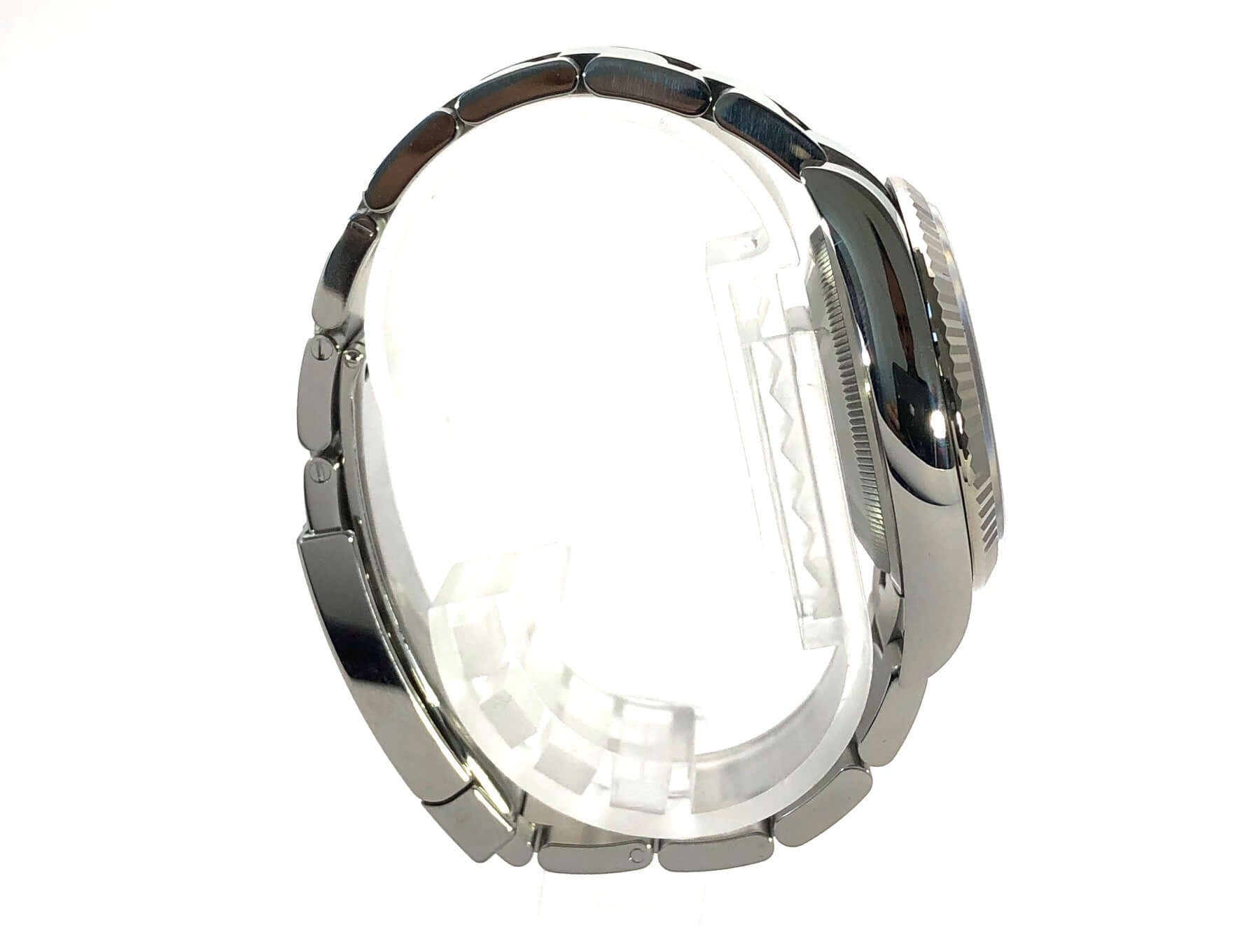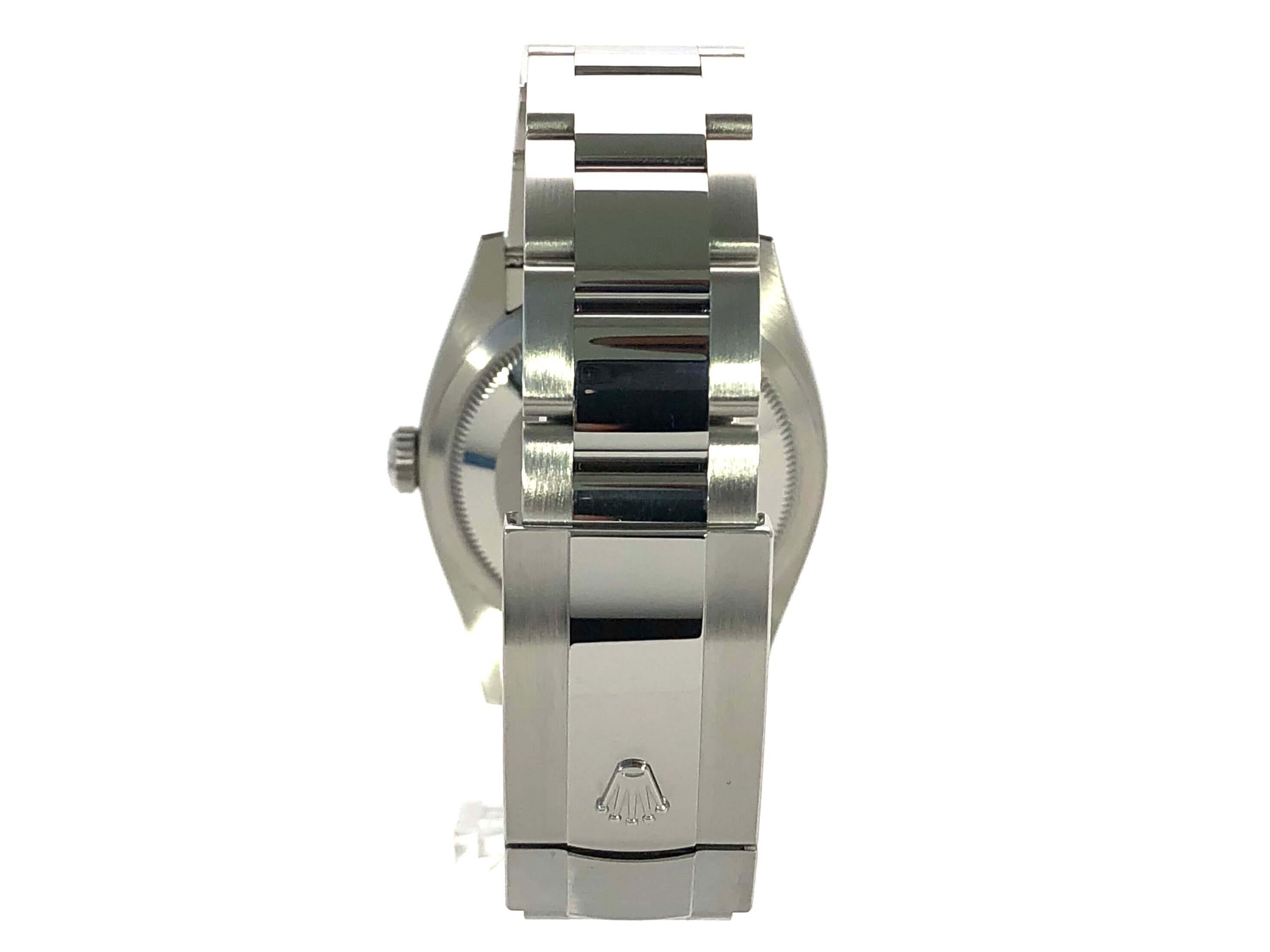 Case made of polished and satin-finished Oystersteel stainless steel, case diameter 36 mm, bezel made of 18 kt white gold, silver-colored dial with applied luminous indices, luminous hands, Oyster stainless steel bracelet with folding clasp, automatic, Rolex manufacture caliber 3235, 70-hour power reserve, date display, chronometer, sapphire crystal, screw-down crown, Screwed stainless steel base, waterproof up to 10 bar.