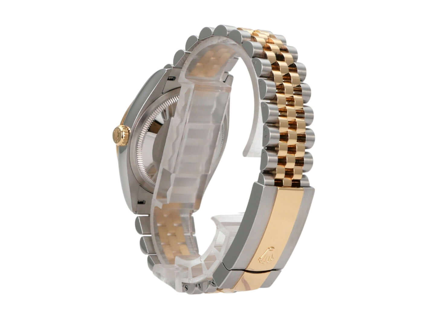 Case made of stainless steel / yellow gold polished and satin-finished, case diameter 36 mm, fluted 18 kt yellow gold bezel, Jubilee bracelet made of stainless steel / 18 kt yellow gold polished and satin-finished with folding clasp, silver-colored dial with diamonds at Roman VI and IX, yellow gold hands, automatic movement, Rolex manufacture caliber 3235 with 31 jewels, 28,800 A/h, 70 hours power reserve, date display, chronometer, scratch-resistant sapphire crystal, screwed 18 kt yellow gold crown, screwed stainless steel case back, water-resistant up to 10 bar.