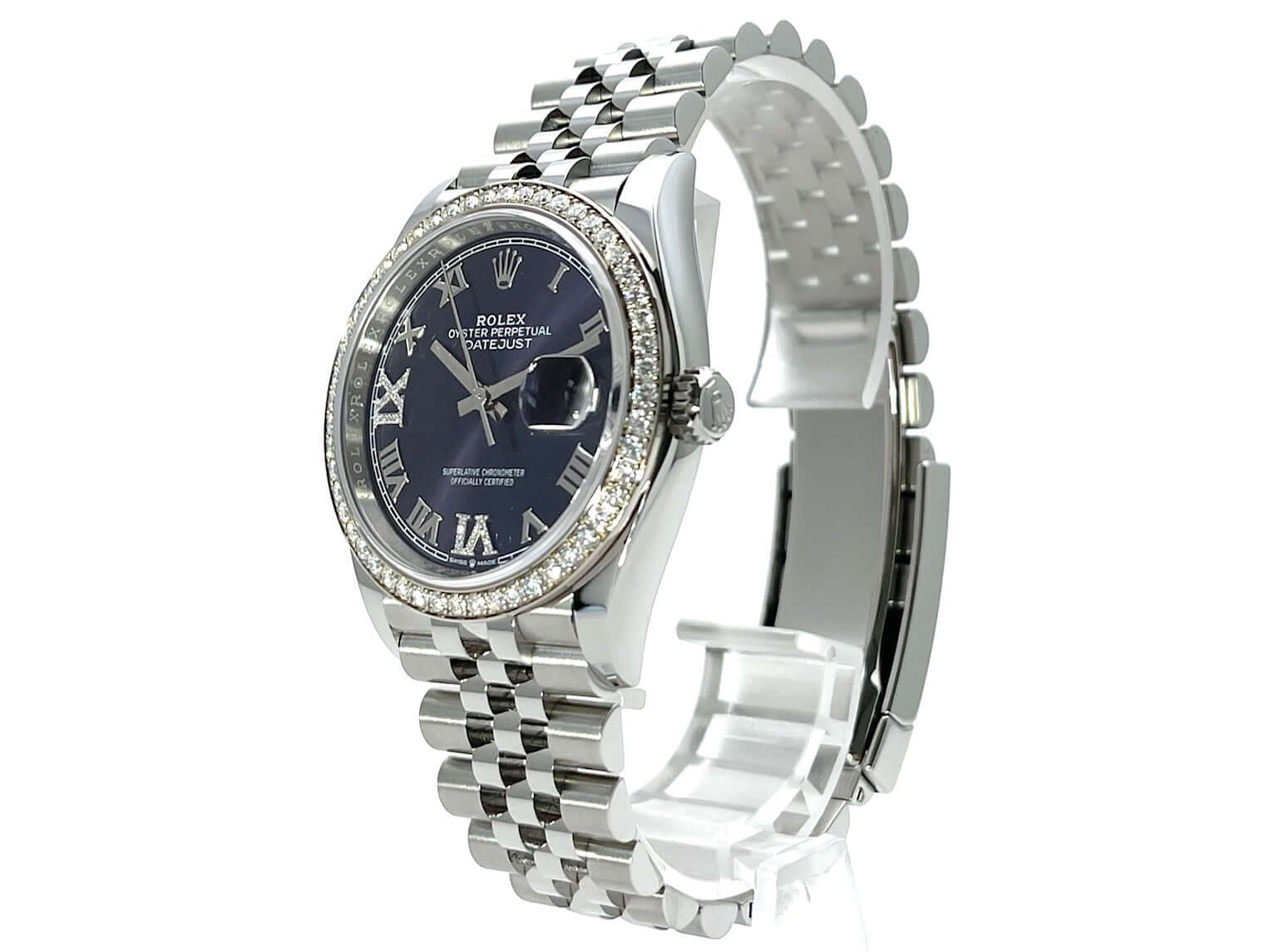 Rolex Datejust 36 Oystersteel / White Gold with Diamonds Ref. 126284RBR Aubergine Roman Diamond Jubile Band