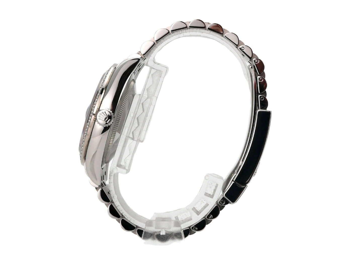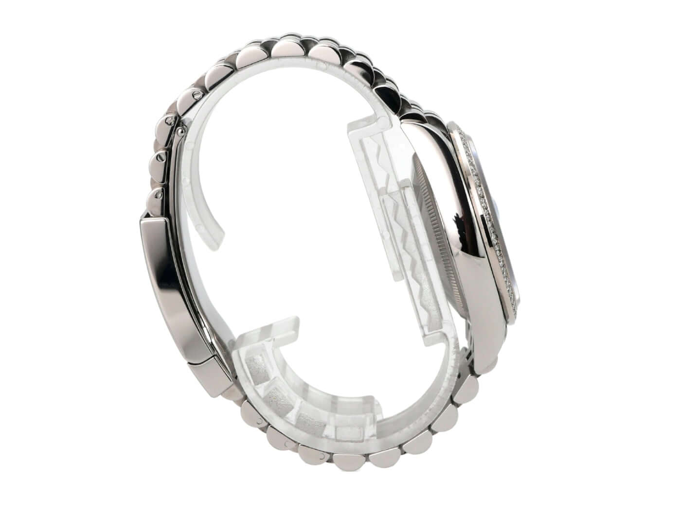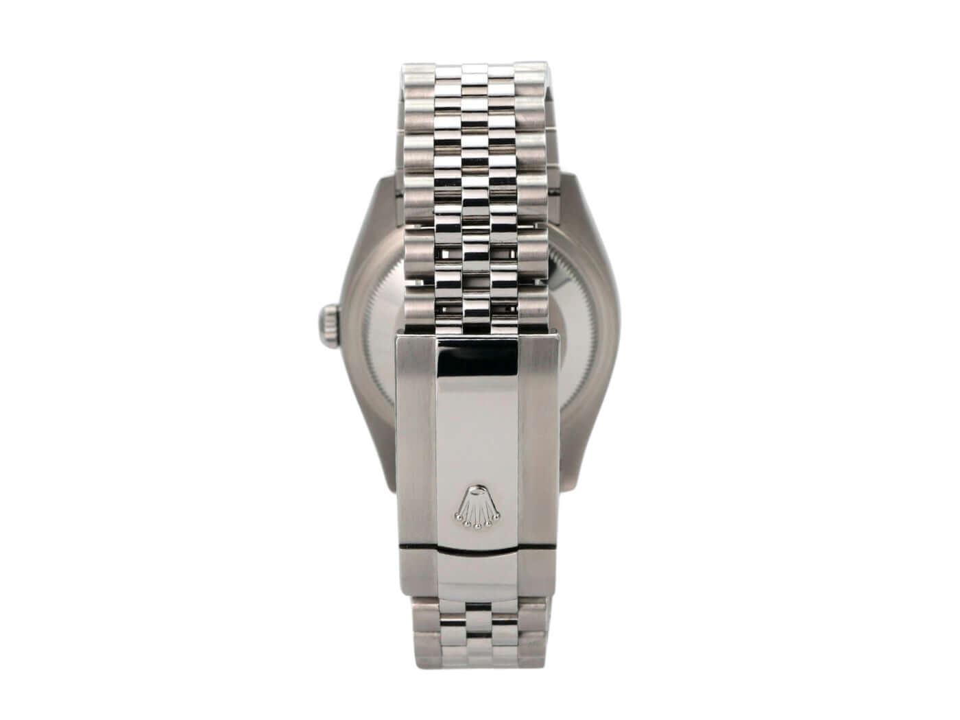 Case made of polished and satin-finished Oystersteel stainless steel, 36 mm case diameter, bezel set with diamonds in 18 kt white gold, blue diamond dial, Jubilee stainless steel bracelet with folding clasp, automatic, Rolex manufacture caliber 3235, 70-hour power reserve, date display, chronometer, sapphire crystal, screw-down crown, screwed stainless steel case back, water-resistant up to 10 bar.