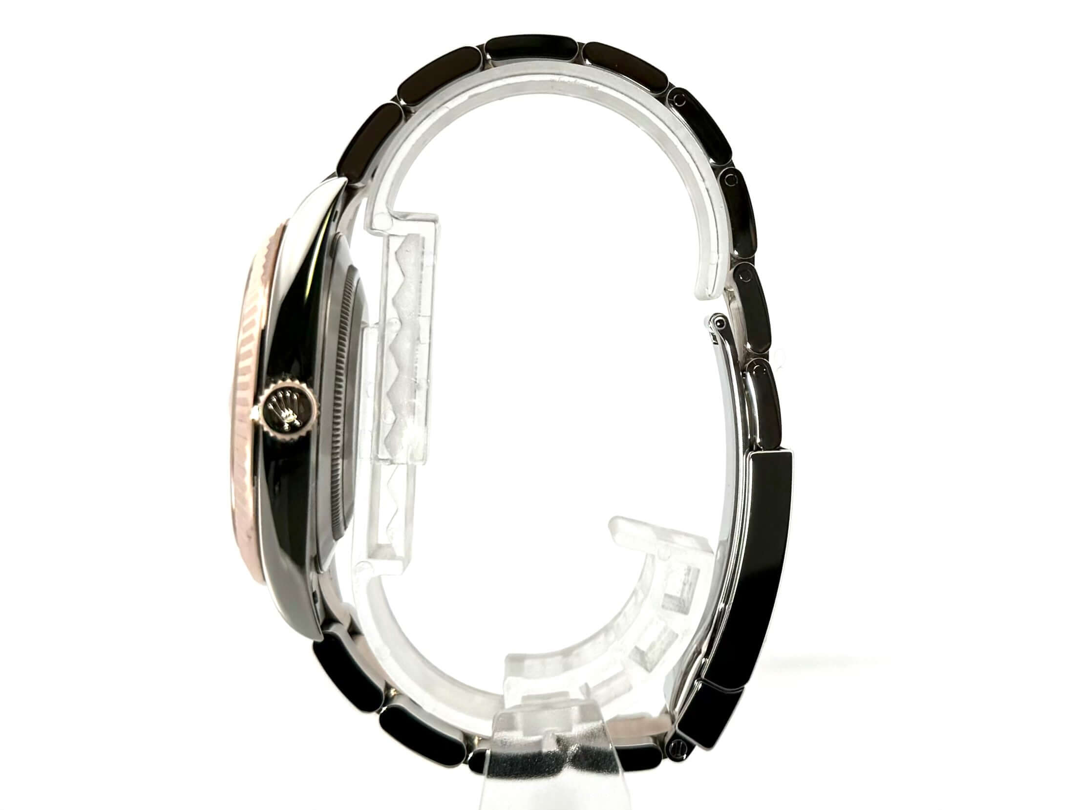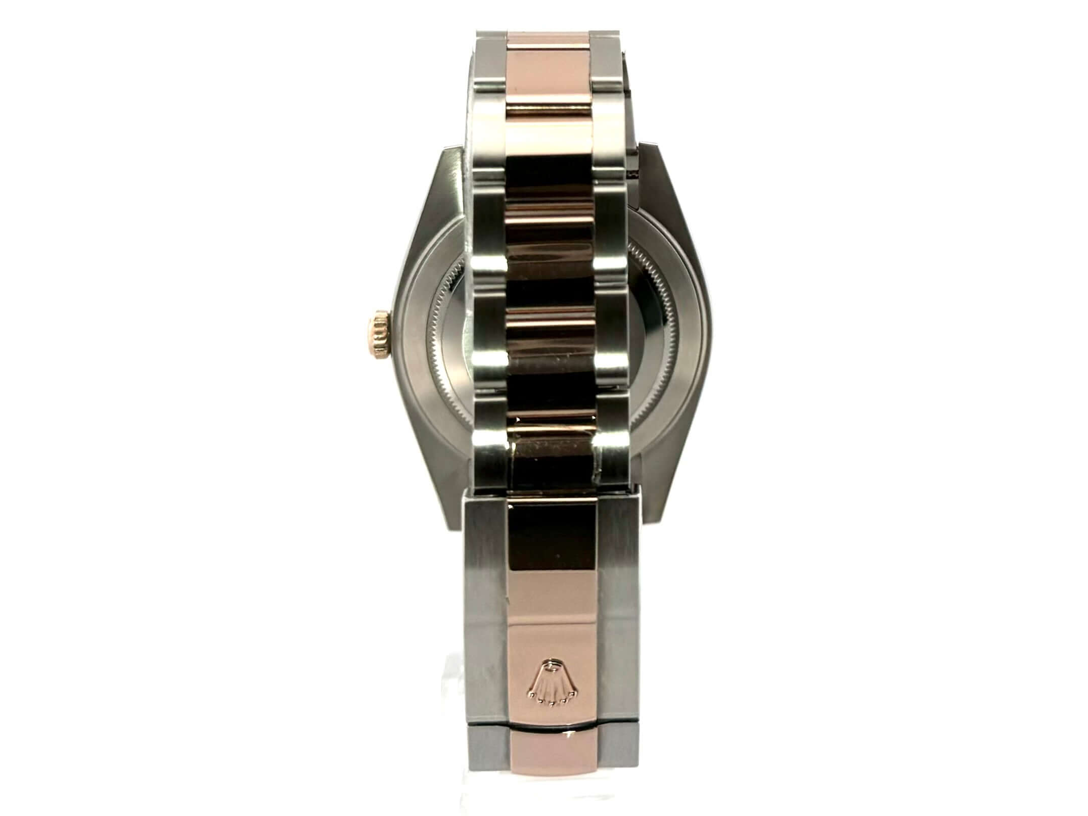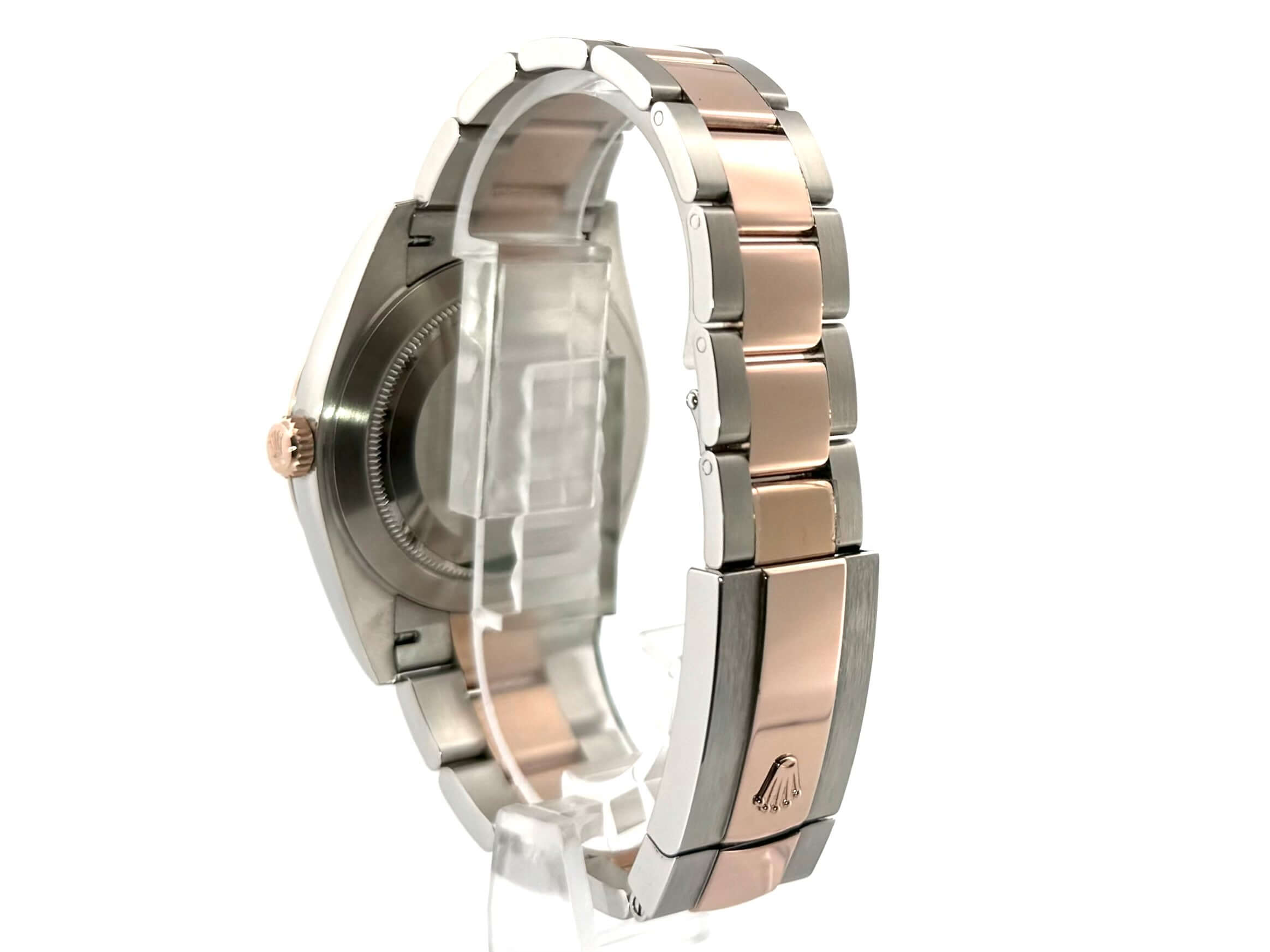 Case made of stainless steel / Everose gold polished and satin-finished, case diameter 41 mm, fluted 18 kt Everose gold bezel, Oyster bracelet made of stainless steel / 18 kt Everose gold polished and satin-finished with folding clasp, Sundust diamond dial, automatic movement, Rolex manufacture caliber 3235, 70 hour power reserve, date display, chronometer, scratch-resistant sapphire crystal, screwed 18 kt Everose gold crown, screwed stainless steel case back, water resistant up to 10 bar.