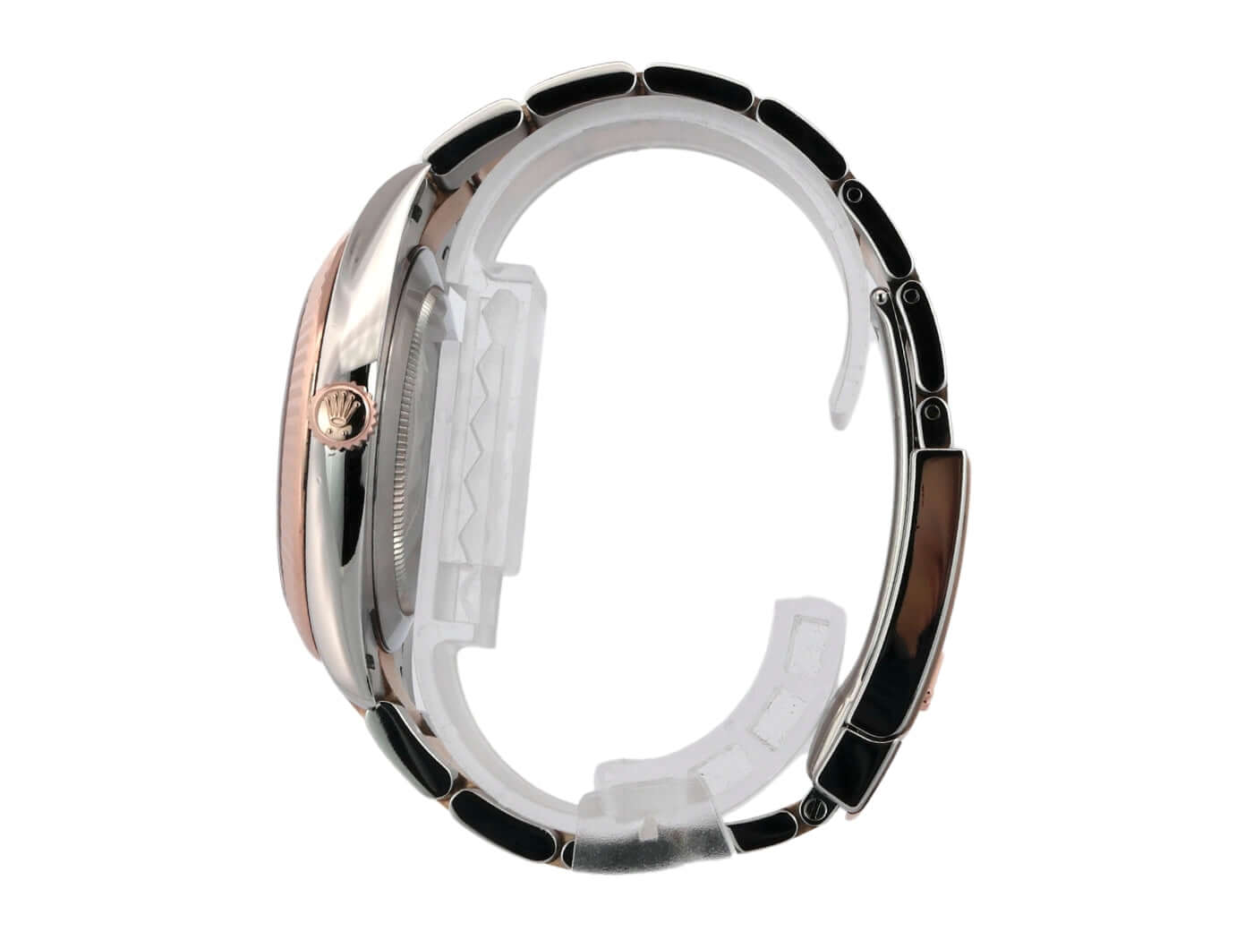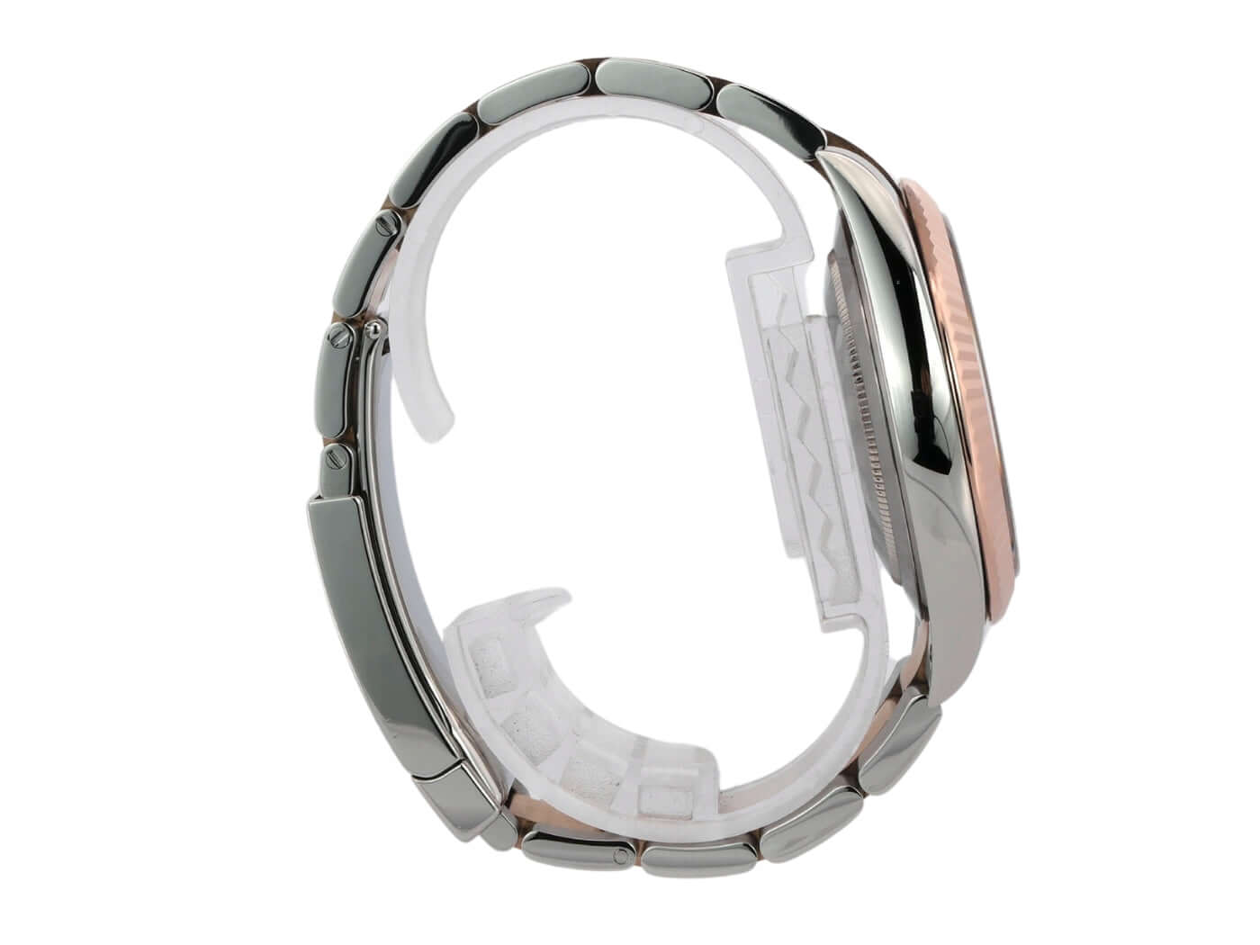 Gehäuse aus Edelstahl / Everose-Gold poliert und satiniert, Gehäusedurchmesser 41 mm, geriffelte 18 kt Everose-Gold Lünette, Oyster Armband aus Edelstahl / 18 kt Everose-Gold poliert und satiniert mit Faltschließe, Sundust Diamantzifferblatt, Automatikwerk, Rolex Manufakturkaliber 3235, 70 Stunden Gangreserve, Datumsanzeige, Chronometer, kratzfestes Saphirglas, verschraubte 18 kt Everose-Gold Krone, Edelstahlboden verschraubt, Wasserdicht bis zu 10 bar.