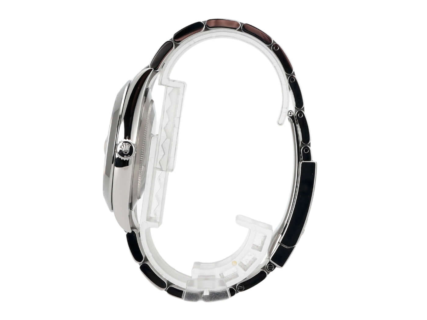 Case made of polished and satined stainless steel, case diameter 41 mm, polished stainless steel bezel, Oyster stainless steel bracelet polished and satined with folding clasp, white dial with 18 kt white gold luminous indices, luminous hands, automatic movement, Rolex manufacture caliber 3235, chronometer, 70 hour power reserve, date display, scratch-resistant sapphire crystal, screwed crown, screwed stainless steel back, water resistant up to 10 cash.