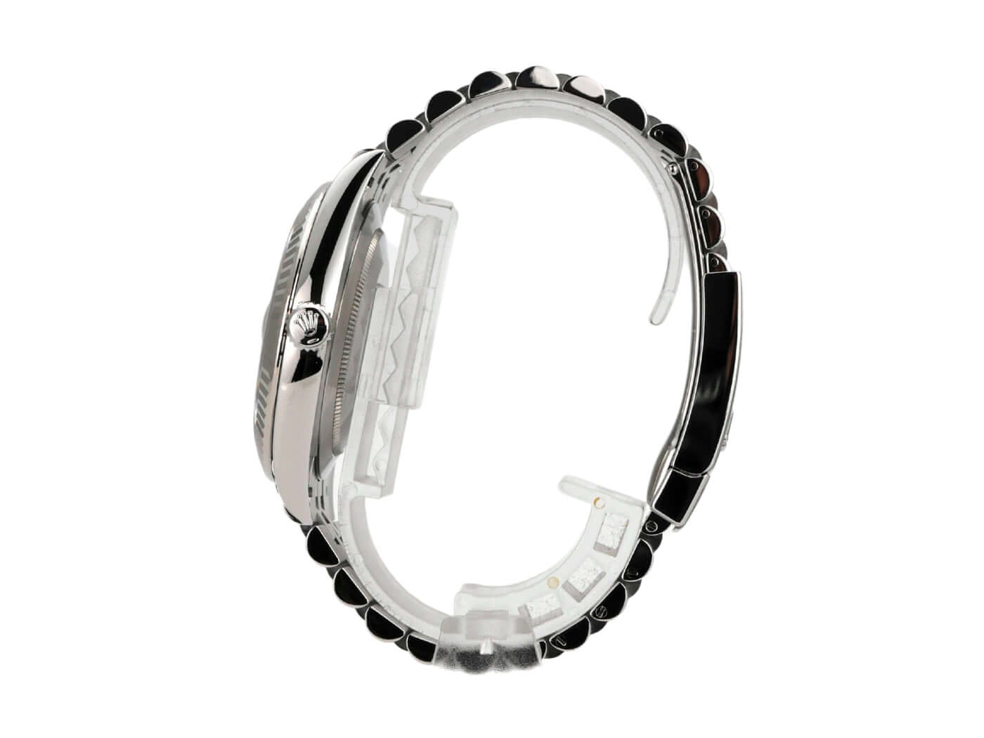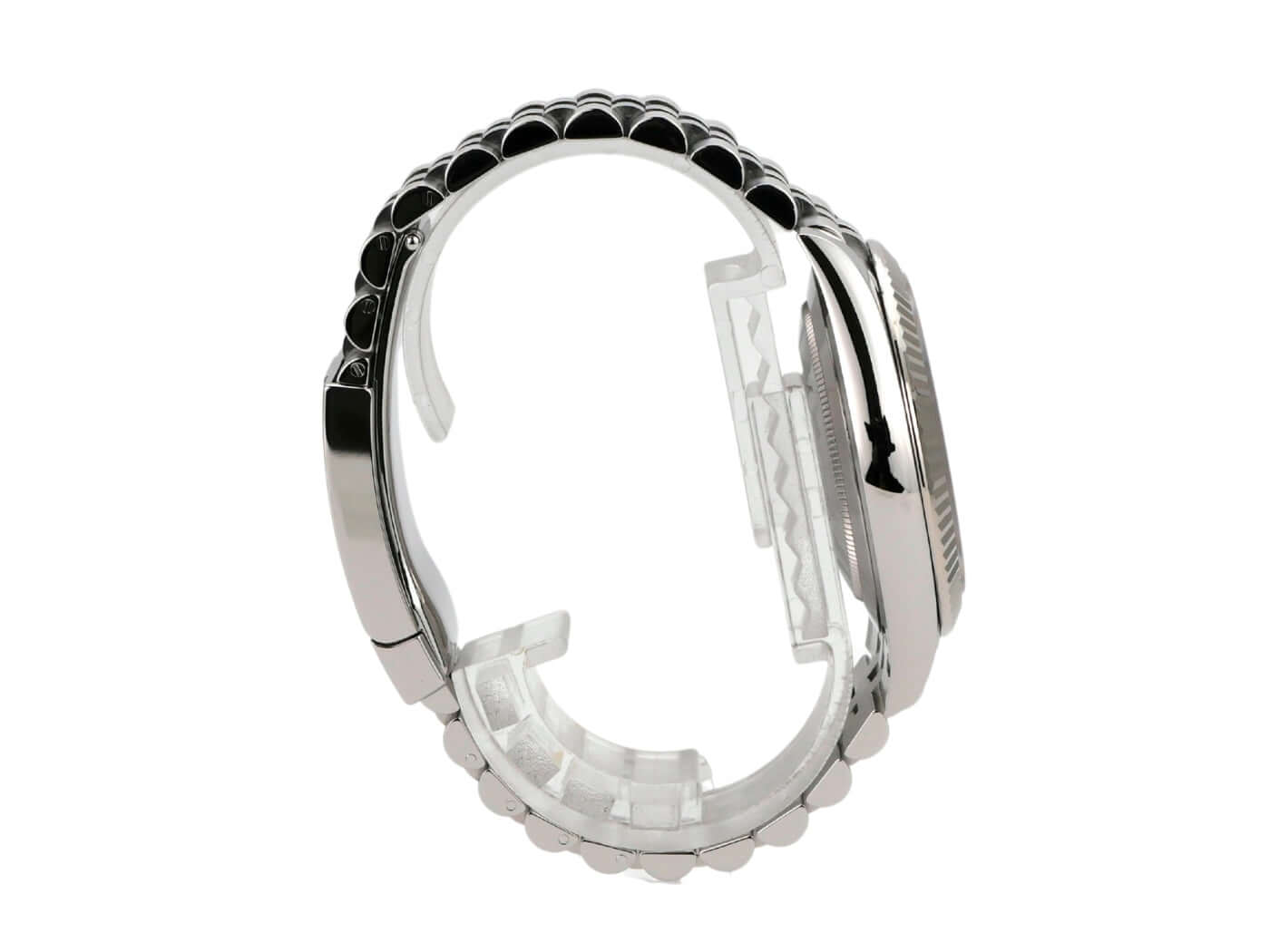 Case made of polished and satin-finished stainless steel, case diameter 41 mm, fluted 18 kt white gold bezel, Jubilee bracelet made of polished and satin-finished stainless steel with folding clasp, black dial with 18 kt white gold luminous indices, luminous hands, automatic movement, Rolex manufacture caliber 3235, 70 hours power reserve, date display, chronometer, scratch-resistant sapphire crystal, screw-down crown, screwed stainless steel case back, water-resistant up to 10 bar.