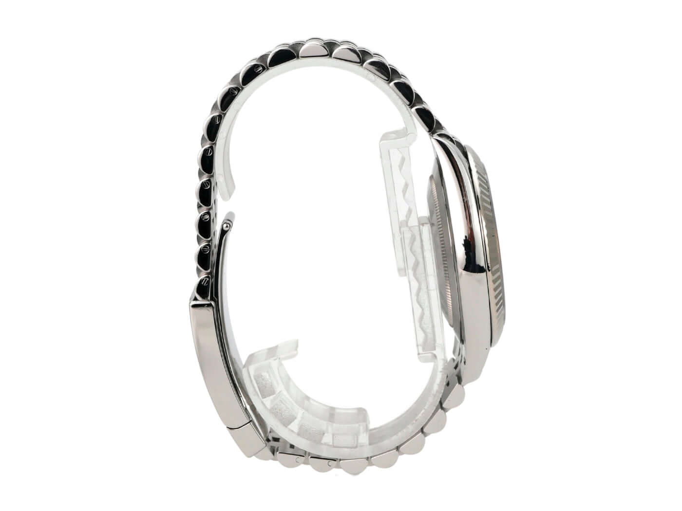 Case made of polished and satin-finished stainless steel, case diameter 41 mm, fluted 18 kt white gold bezel, Jubilee bracelet made of polished and satin-finished stainless steel with folding clasp, blue dial with 18 kt white gold luminous indices, luminous hands, automatic movement, Rolex manufacture caliber 3235, 70 hours power reserve, date display, chronometer, scratch-resistant sapphire crystal, screw-down crown, screwed stainless steel back, water-resistant up to 10 bar.