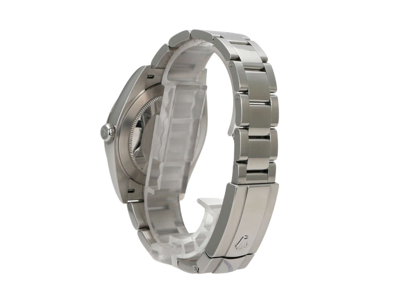 Case made of polished and satin-finished stainless steel, case diameter 41 mm, fluted 18 kt white gold bezel, polished and satin-finished Oyster stainless steel bracelet with folding clasp, blue dial with Roman 18 kt white gold numerals, automatic movement, Rolex manufacture caliber 3235, 70-hour power reserve, date display, chronometer, scratch-resistant sapphire crystal, screw-down crown, screwed stainless steel case back, water-resistant up to 10 bar.