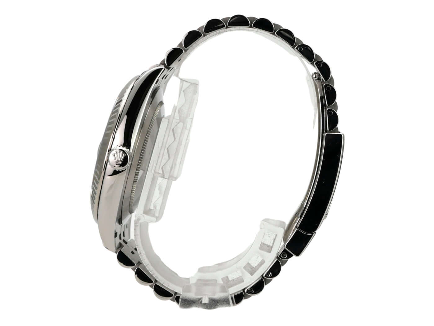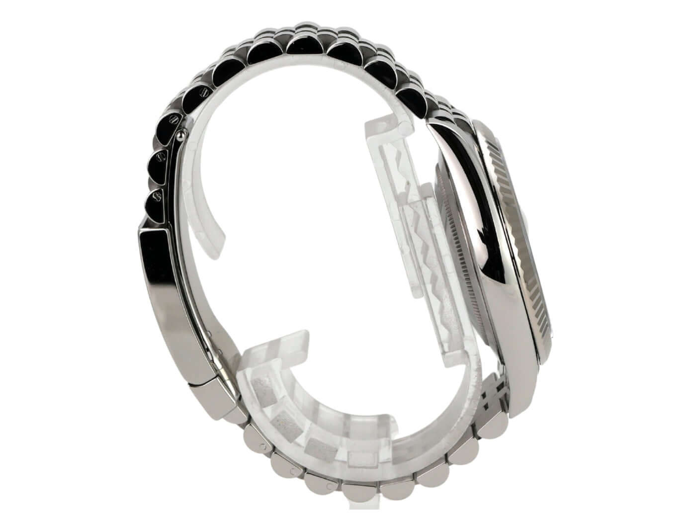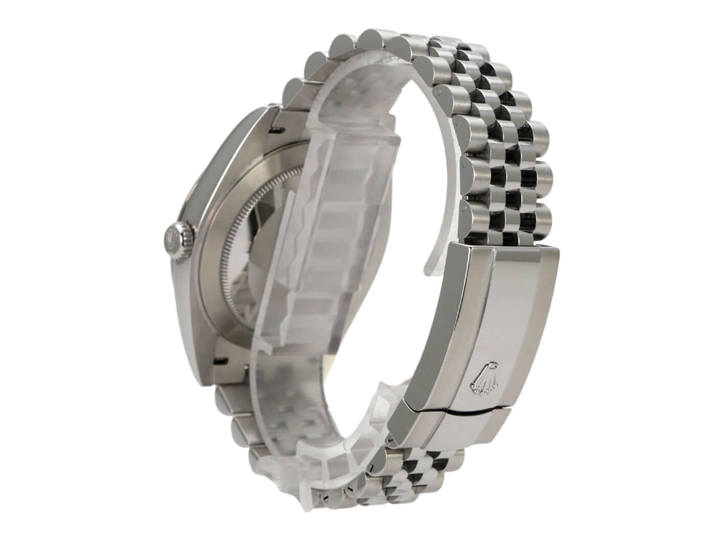 Case made of polished and satin-finished stainless steel, case diameter 41 mm, fluted 18 kt white gold bezel, Jubilee bracelet made of polished and satin-finished stainless steel with folding clasp, mint green dial with 18 kt white gold luminous indices, luminous hands, automatic movement, Rolex manufacture caliber 3235, chronometer, 70-hour power reserve, date display, scratch-resistant sapphire crystal, screw-down crown, screwed stainless steel case back, water-resistant up to 10 bar.