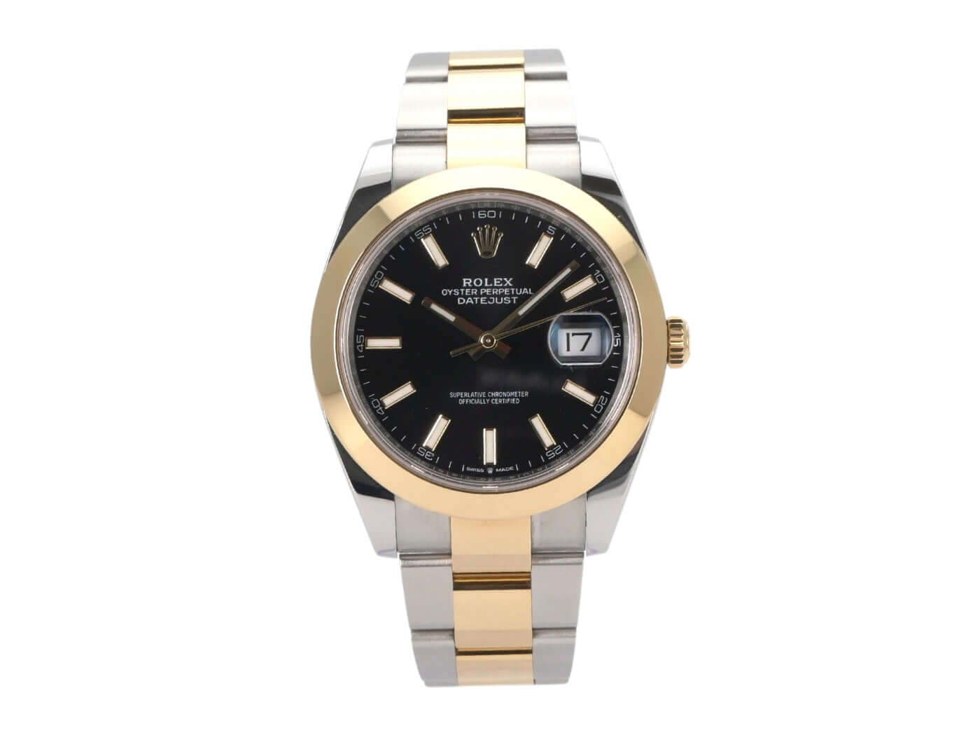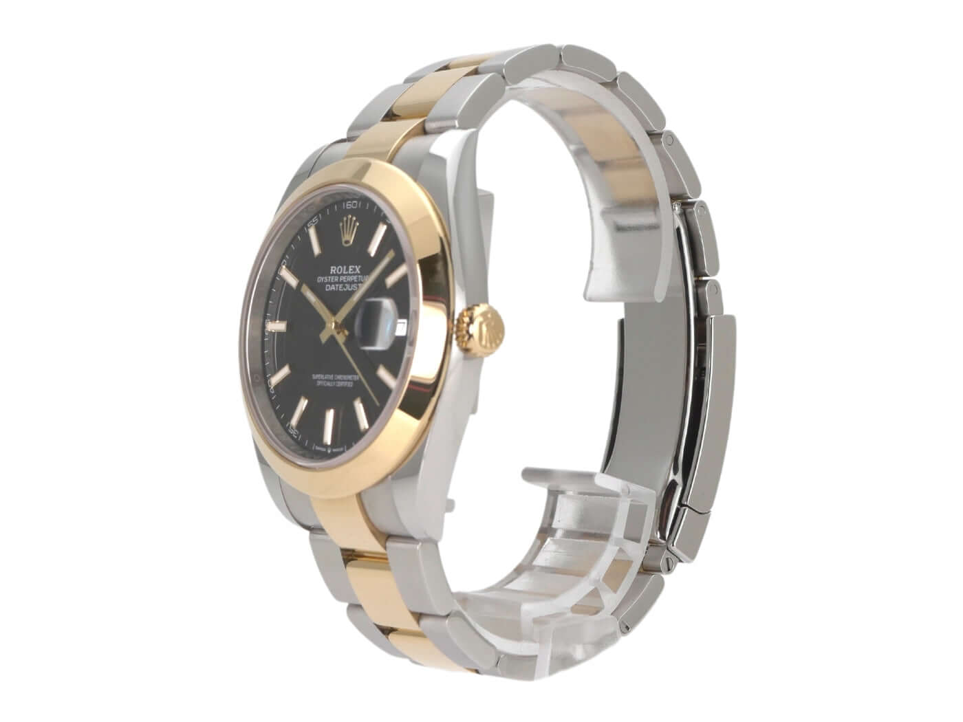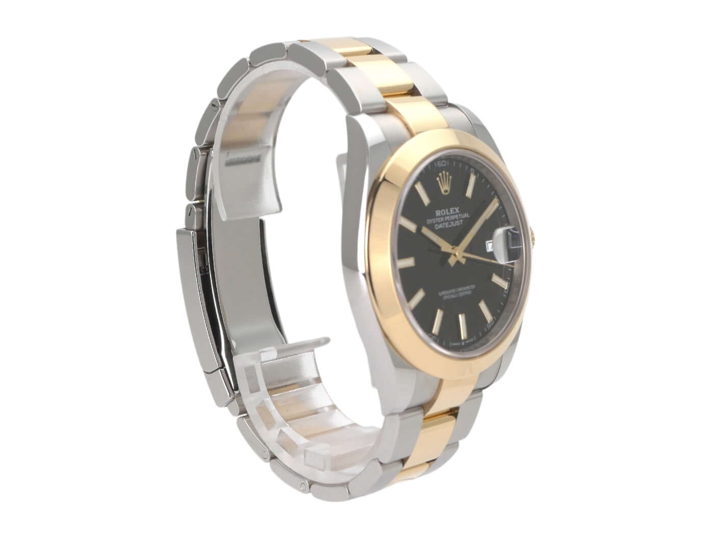 Case made of stainless steel / yellow gold polished and satin-finished, case diameter 41 mm, polished 18 kt yellow gold bezel, Oyster bracelet made of stainless steel / 18 kt yellow gold polished and satin-finished with folding clasp, black dial with 18 kt yellow gold luminous indices, 18 kt yellow gold luminous hands, automatic movement, Rolex manufacture caliber 3235, 70 hour power reserve, date display, chronometer, scratch-resistant sapphire crystal, screwed 18 kt yellow gold crown, screwed stainless steel back, water resistant up to 10 bar.