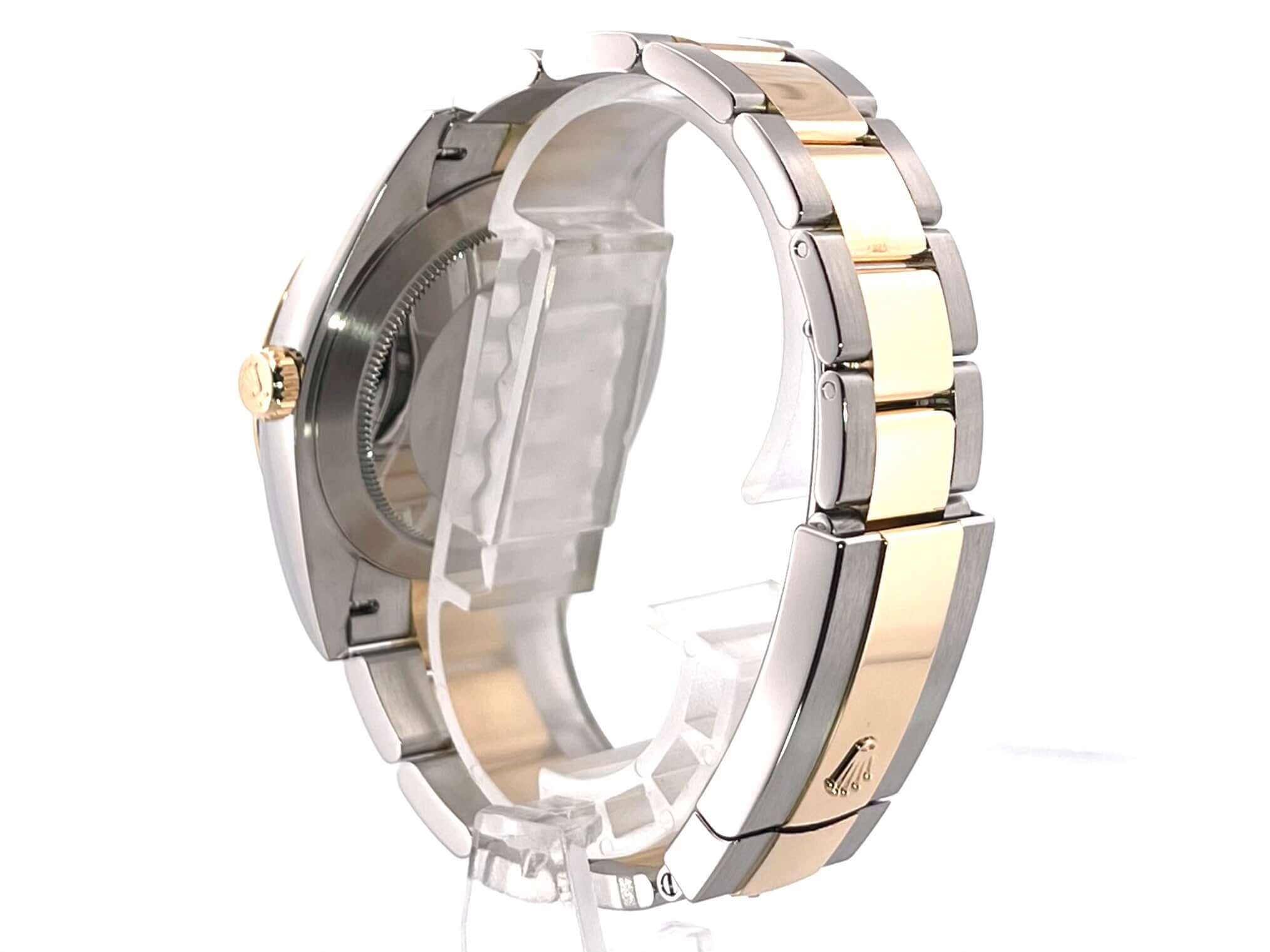 Case made of stainless steel / yellow gold polished and satin-finished, case diameter 41 mm, polished 18 kt yellow gold bezel, Oyster bracelet made of stainless steel / 18 kt yellow gold polished and satin-finished with folding clasp, slate gray dial with Roman numerals, 18 kt yellow gold luminous hands, automatic movement, chronometer, Rolex manufacture caliber 3235, 70 hour power reserve, date display, scratch-resistant sapphire crystal, screwed 18 kt yellow gold crown, screwed stainless steel back, water resistant up to 10 bar.