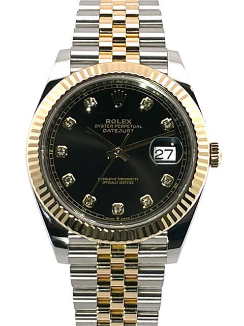 Rolex Datejust 41 Stainless Steel Yellow Gold 126333 Black DIA Jubile Band