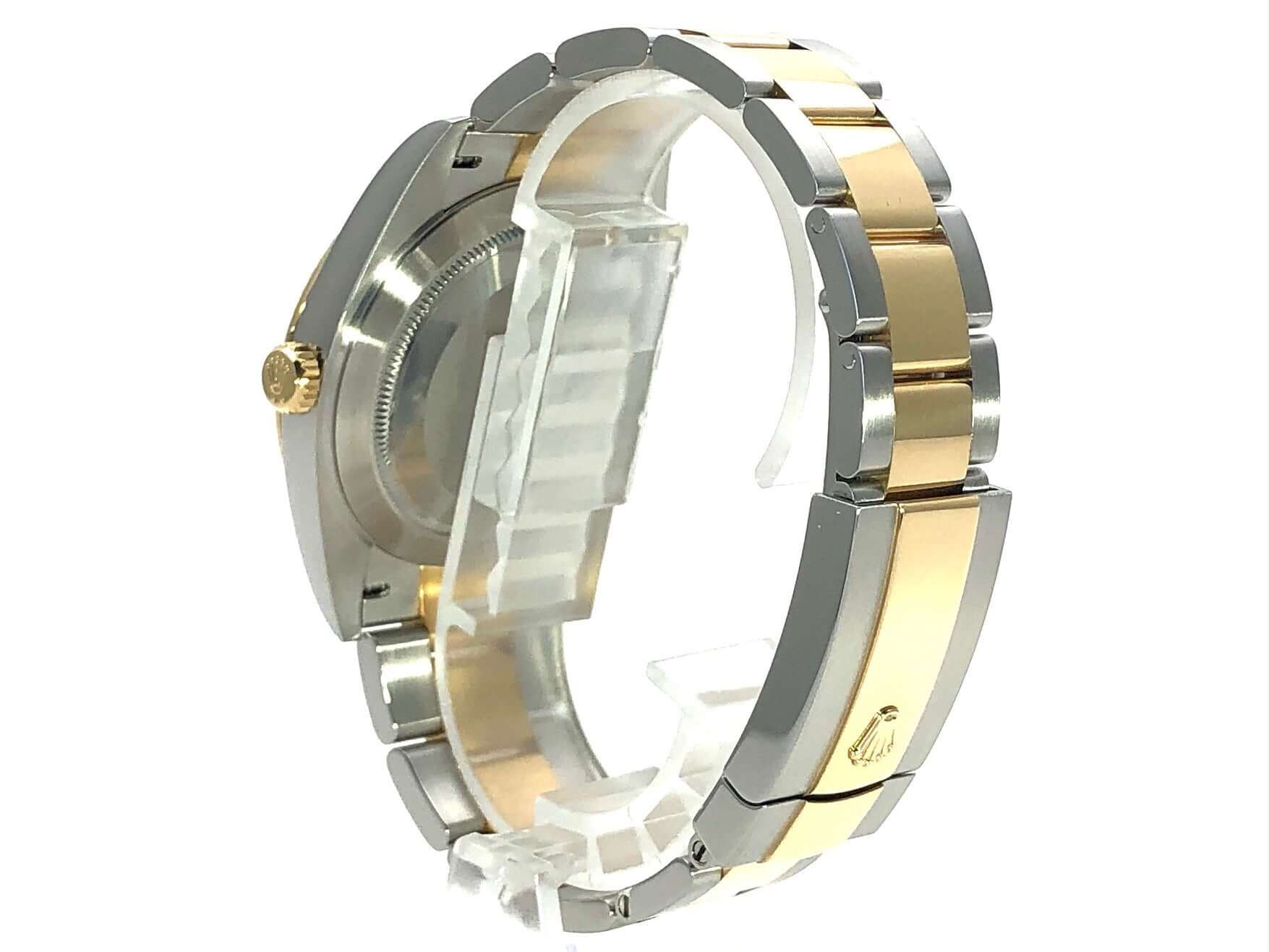 Case made of stainless steel / yellow gold polished and satin-finished, case diameter 41 mm, polished 18 kt yellow gold bezel, Oyster bracelet made of stainless steel / 18 kt yellow gold polished and satin-finished with folding clasp, white dial with 18 kt yellow gold luminous indices, 18 kt yellow gold luminous hands, automatic movement, Rolex manufacture caliber 3235, chronometer, 70 hour power reserve, date display, scratch-resistant sapphire crystal, screwed 18 kt yellow gold crown, screwed stainless steel back, water resistant up to 10 bar.