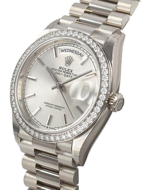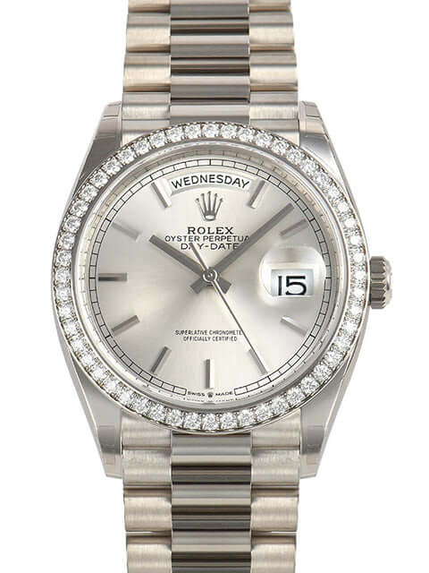 Rolex Day-Date 36 White Gold 128349RBR Silver Index