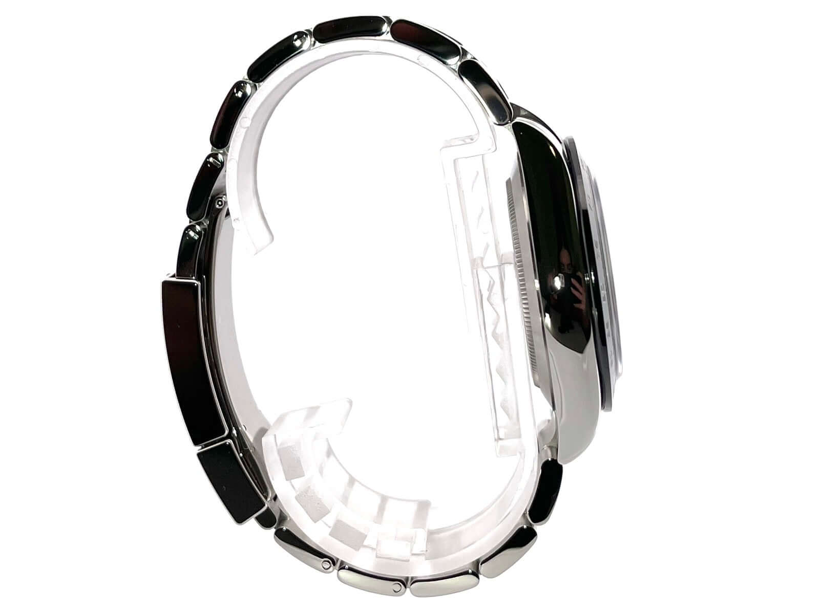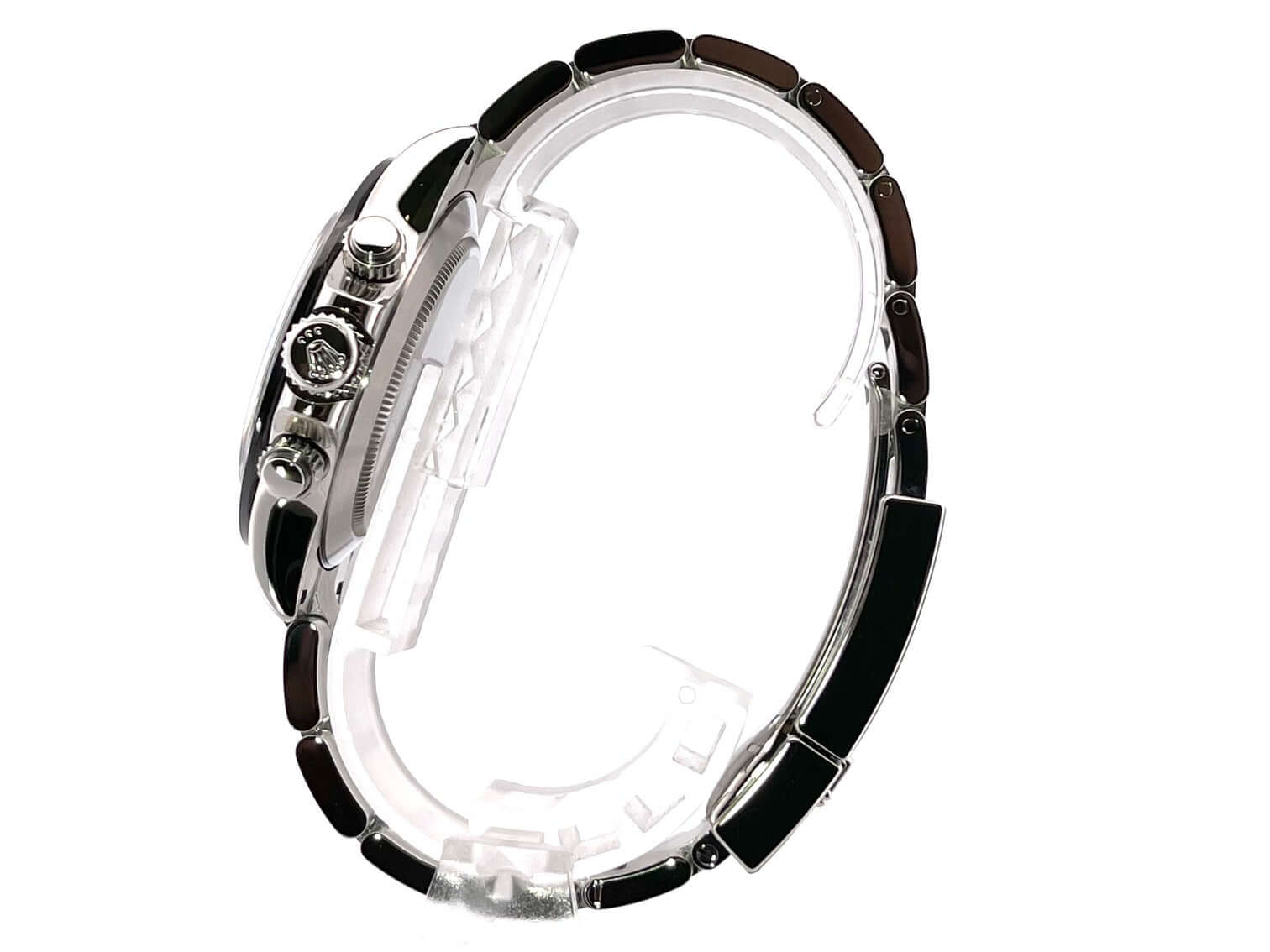 Case made of polished and satined stainless steel, ceramic bezel with tachymeter scale, Oyster stainless steel bracelet polished and satined with safety folding clasp, white dial, luminous hands, Rolex manufacture caliber 4130, 44 jewels, power reserve approx. 72 hours, chronometer, sapphire crystal, screw-down crown with side protection and manufacturer logo , screwed stainless steel base, waterproof up to 10 bar.