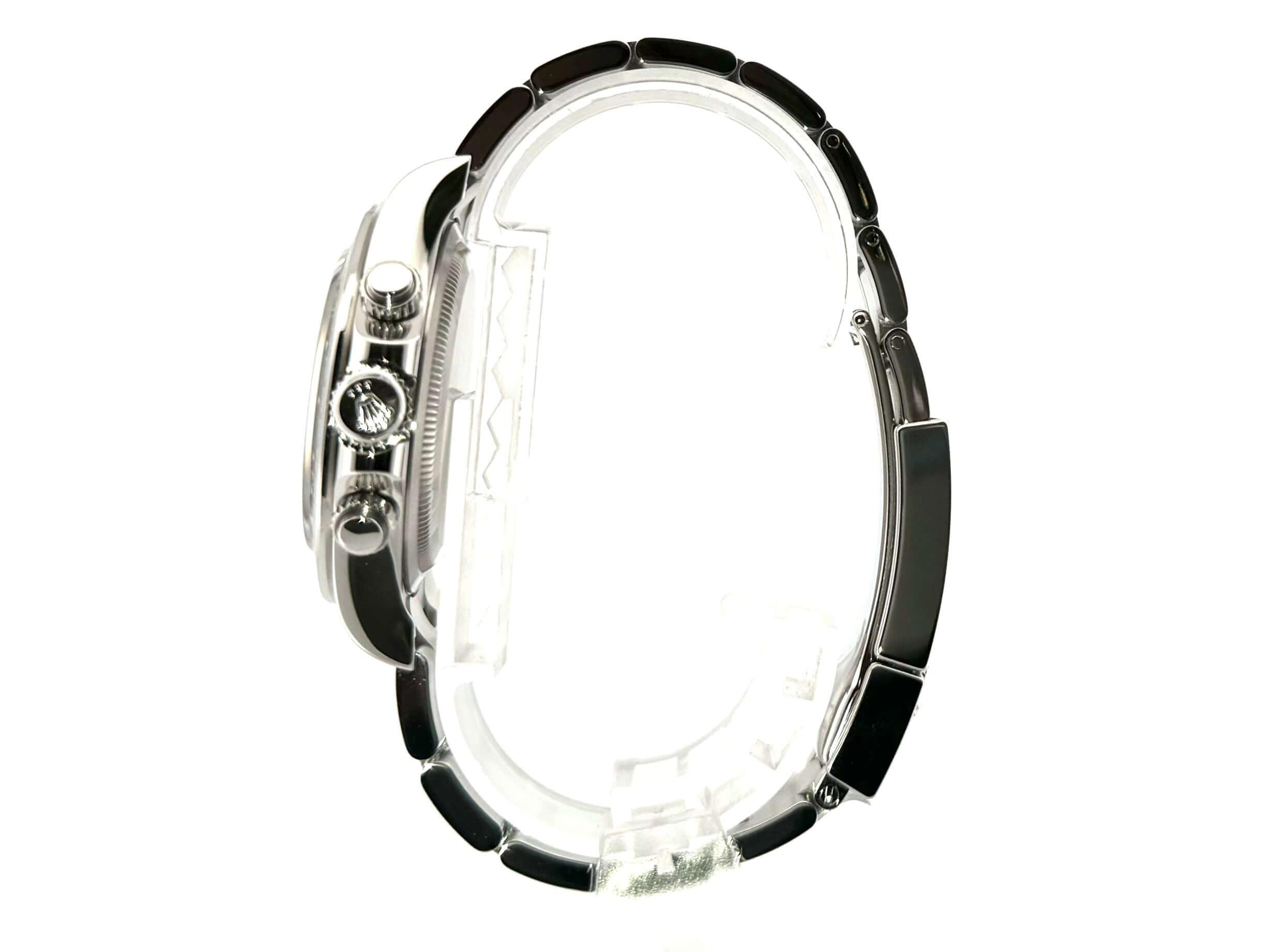 Case made of polished and satin-finished stainless steel, ceramic bezel with tachymetric scale, Oyster stainless steel bracelet polished and satin-finished with safety folding clasp, black dial, luminous hands, Rolex manufacture caliber 4131, 47 jewels, power reserve approx. 72 hours, chronometer, sapphire crystal, screw-down crown with protection and manufacturer logo, screw-down stainless steel case back, water-resistant up to 10 bar.