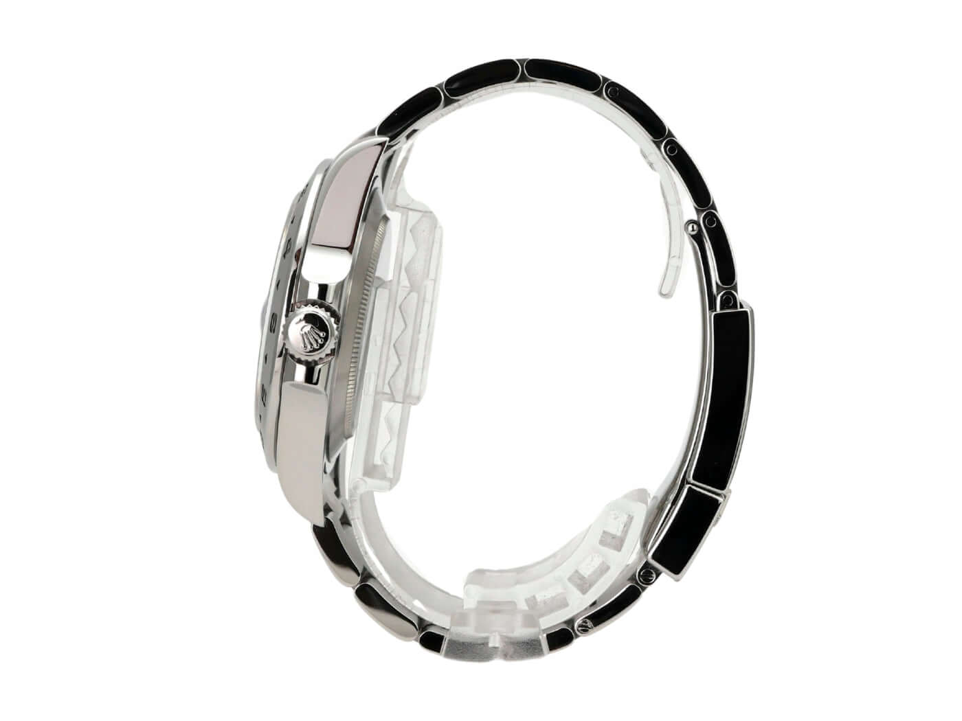 Polished and satin-finished stainless steel case, case diameter 42 mm, case height 12.5 mm, satin-finished stainless steel bezel with 24-hour scale, satin-finished Oyster stainless steel bracelet with safety folding clasp, black dial with applied luminous indices and luminous dots, luminous hands, automatic movement, Rolex manufacture caliber 3187 with 31 jewels, 28,800 A/h, date display, second time zone, chronometer, screw-down crown with flank protection, sapphire crystal, screwed stainless steel back, water-resistant up to 10 bar.