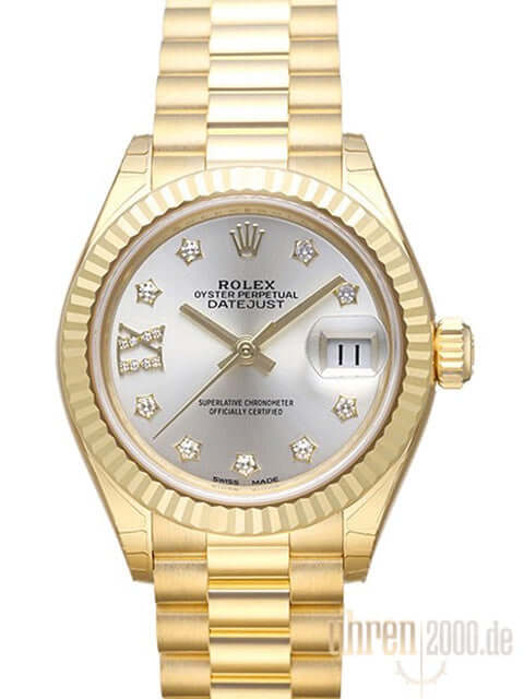 Rolex Lady-Datejust 28 18kt Yellow Gold 279178 Silver DIA President Band