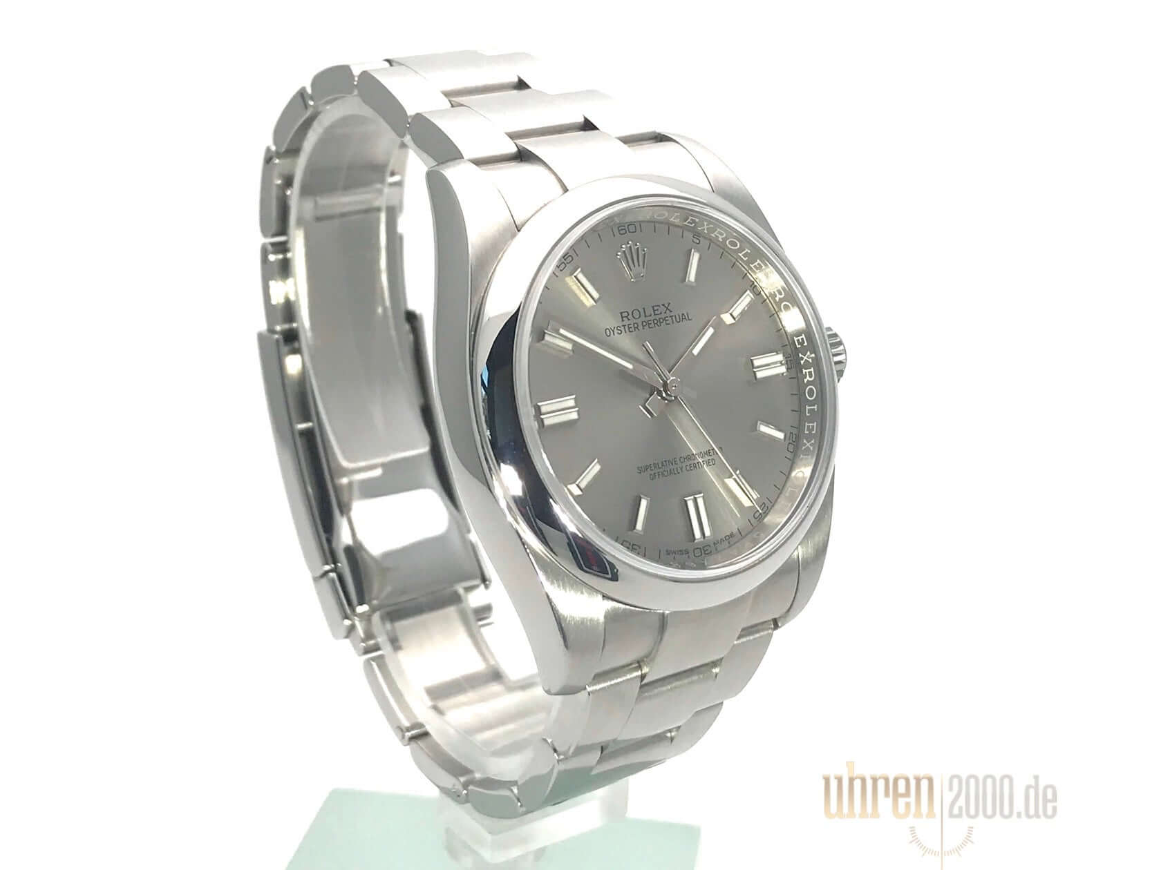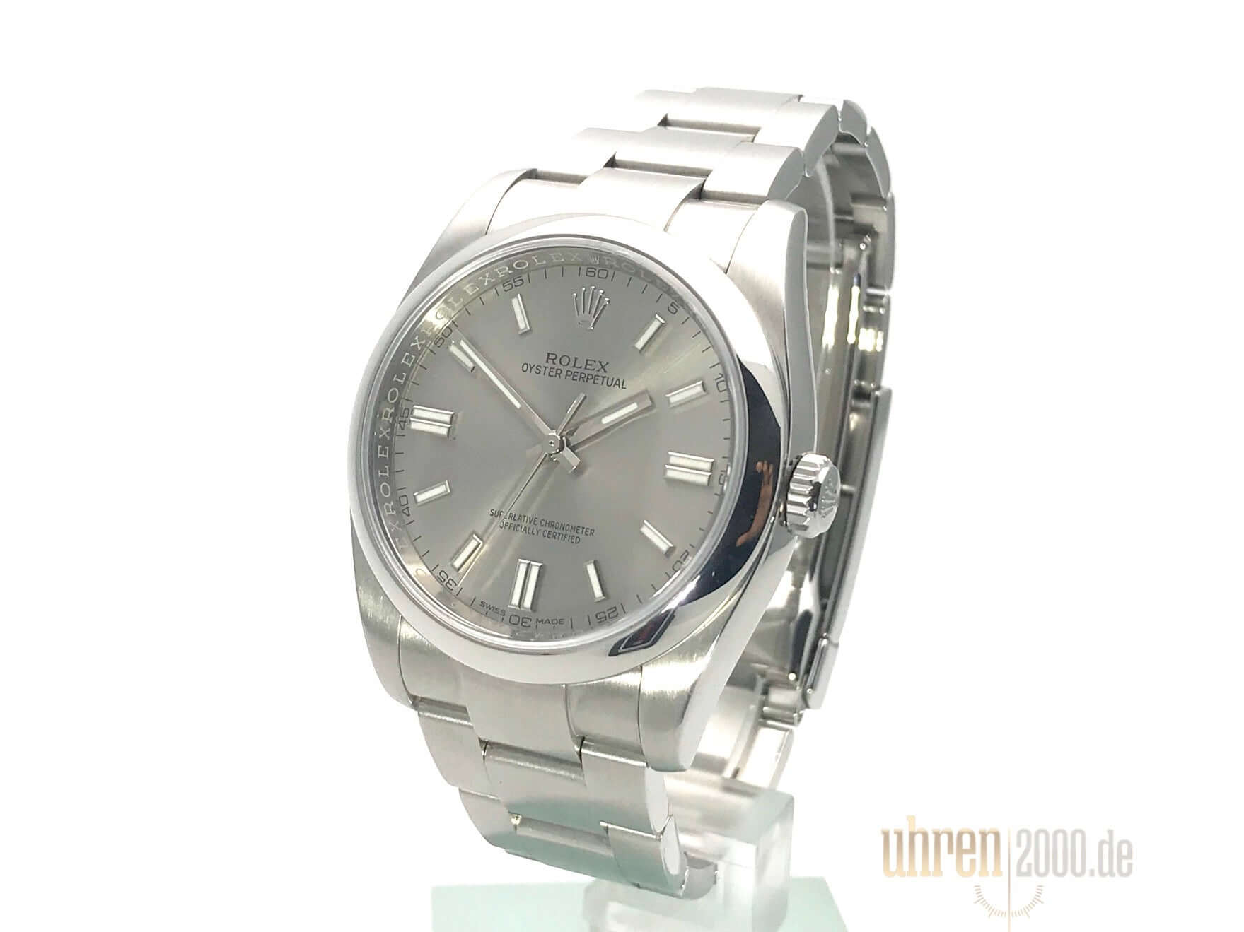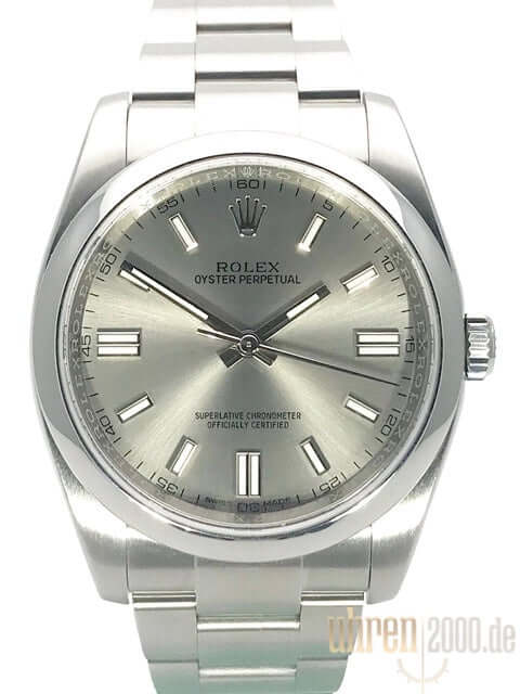 Polished and satinized stainless steel case, case diameter 36 mm, satinized Oyster stainless steel bracelet with folding clasp, steel-colored dial with applied index, automatic movement, chronometer with certificate, Rolex manufacture caliber, sapphire crystal, water resistant to 10 bar.