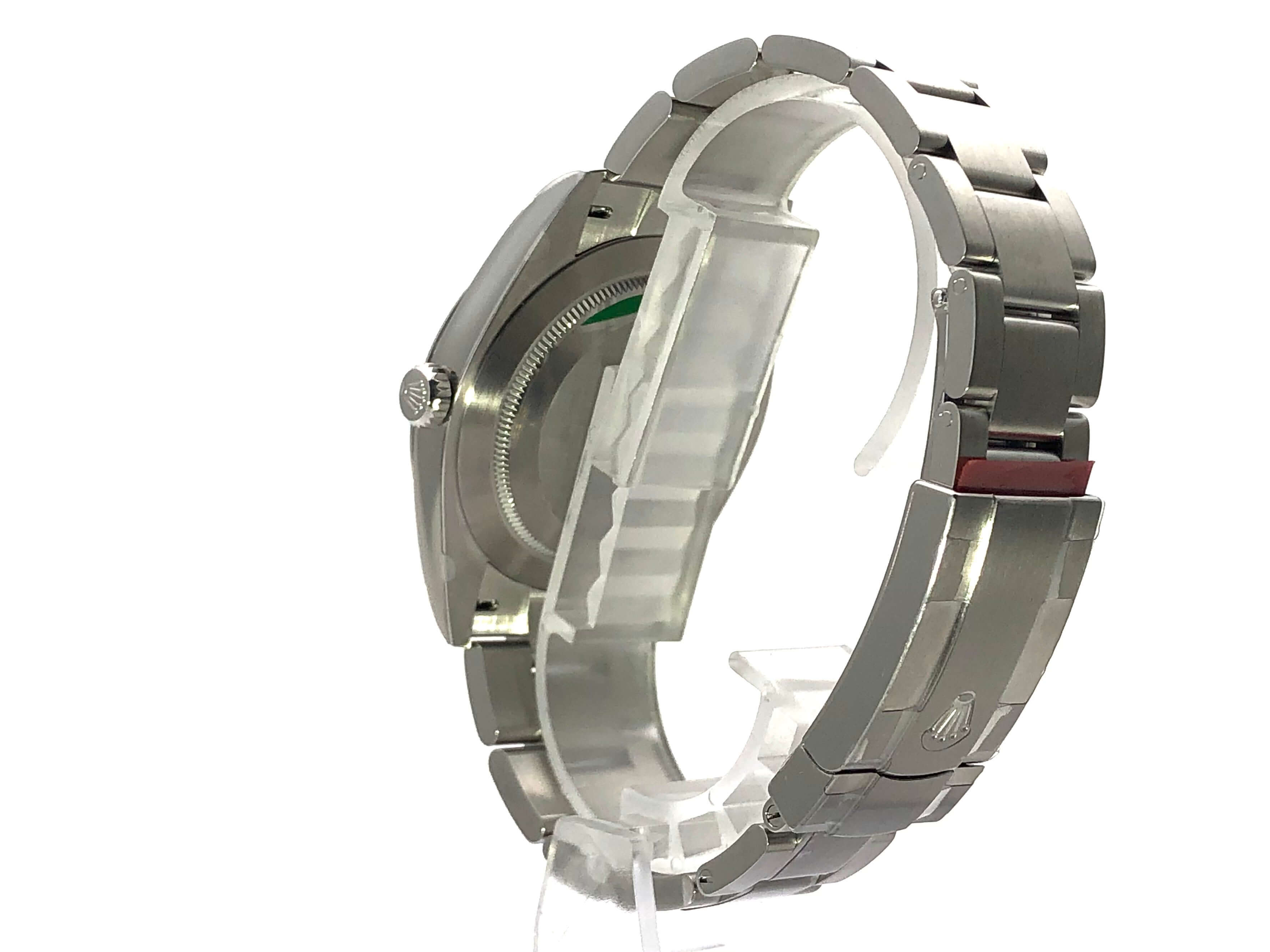 Case made of polished and satin-finished stainless steel, case diameter 41 mm, Oyster stainless steel bracelet with folding clasp, red dial with luminous indices, luminous hands, automatic, Rolex manufacture caliber 3230, power reserve 70 hours, sapphire crystal, waterproof up to 10 bar.
