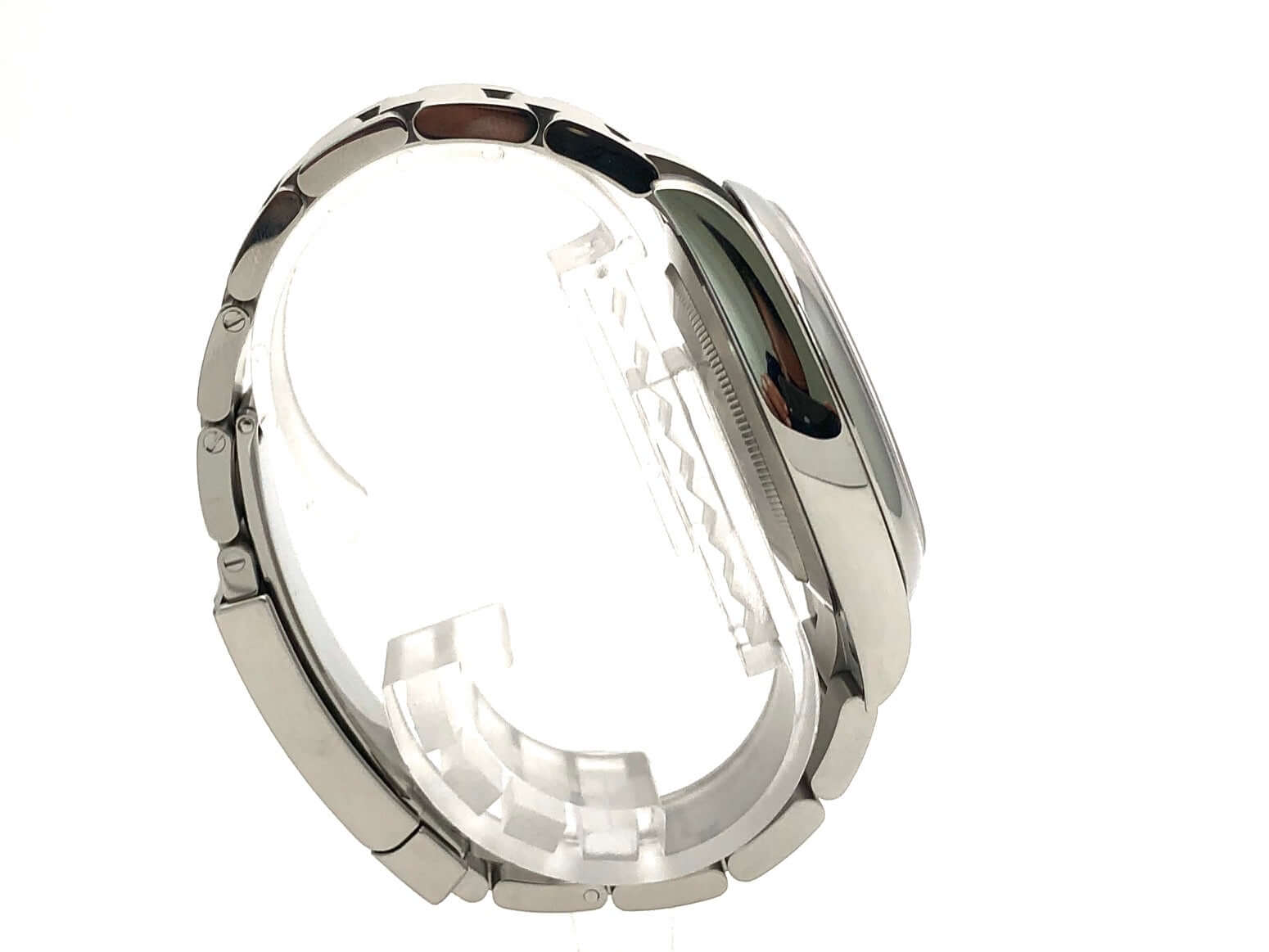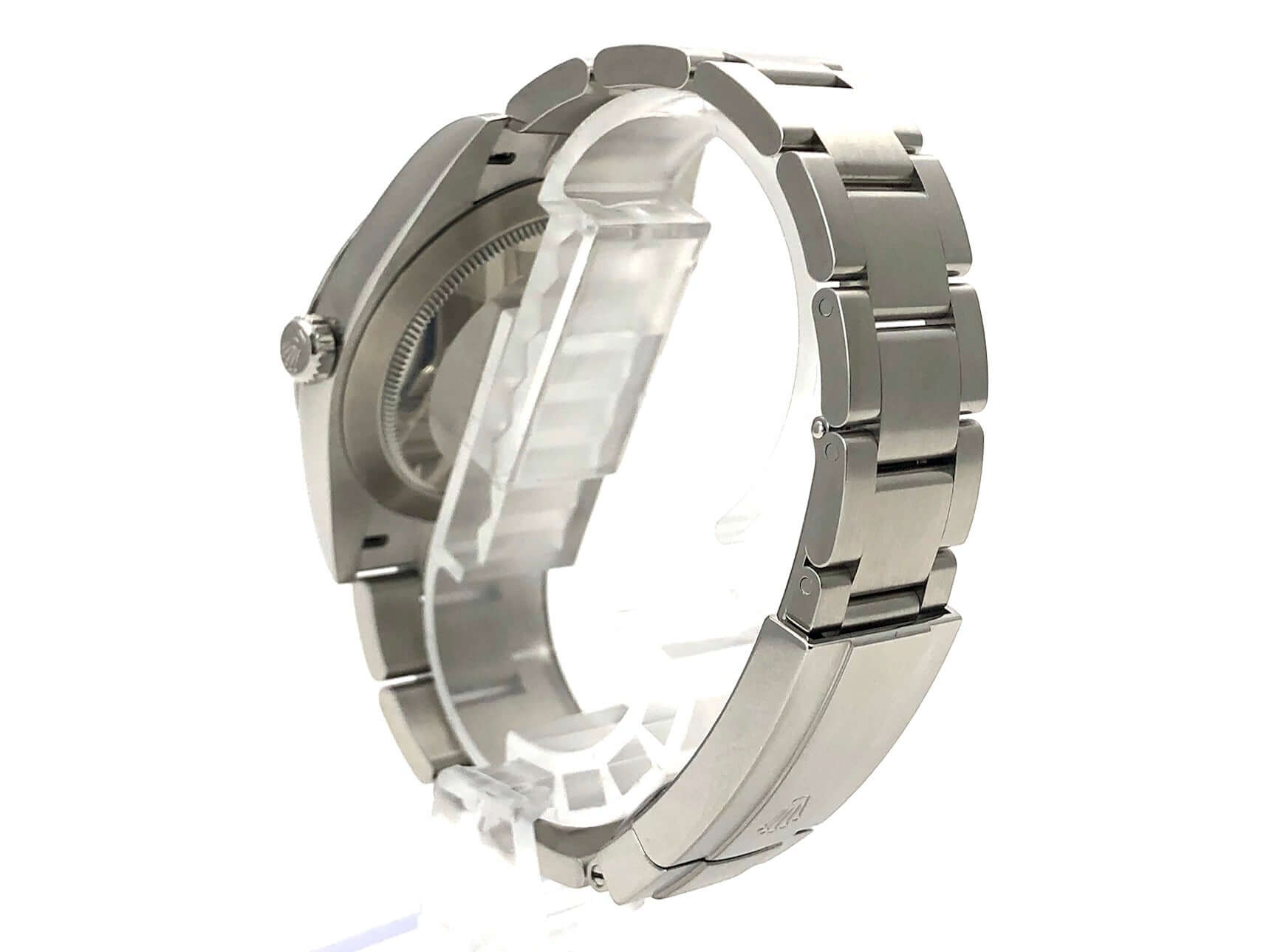 Case made of polished and satin-finished stainless steel, case diameter 41 mm, Oyster stainless steel bracelet with folding clasp, green dial with indices, automatic, Rolex manufacture caliber 3230, power reserve 70 hours, sapphire crystal, water resistant to 10 bar.