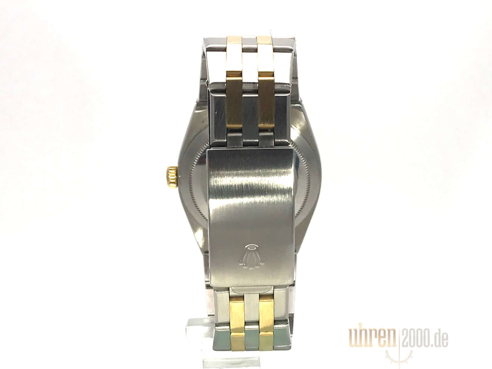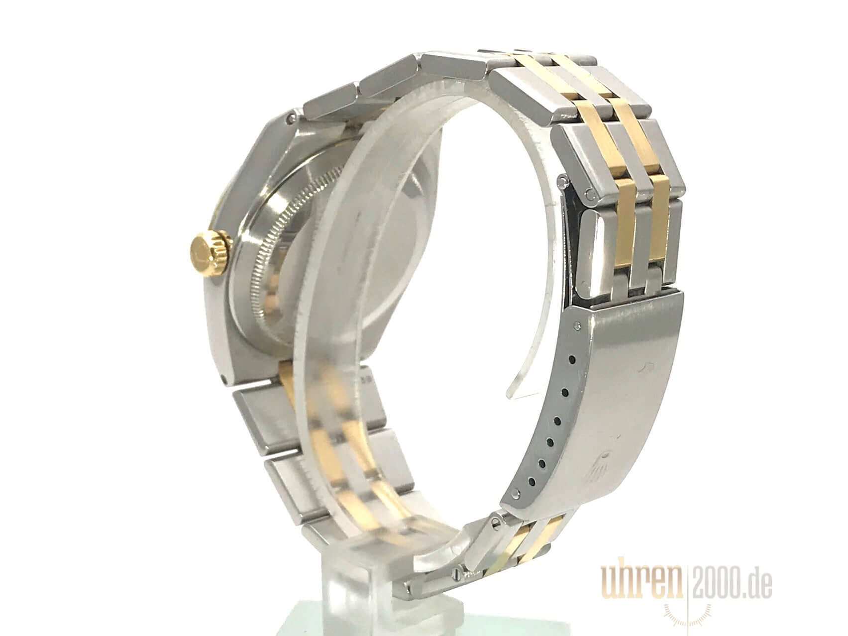 Case made of polished and satined stainless steel, case diameter 36 mm, case height approx. 12 mm, yellow gold fluted bezel, Jubile stainless steel / yellow gold strap polished and satined with folding clasp, champagne-colored dial, quartz movement, date display, chronometer, plexiglass, screwed yellow gold crown, screwed stainless steel back, Waterproof up to 10 bar.